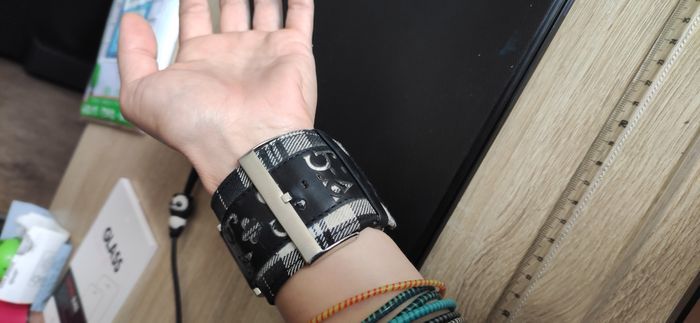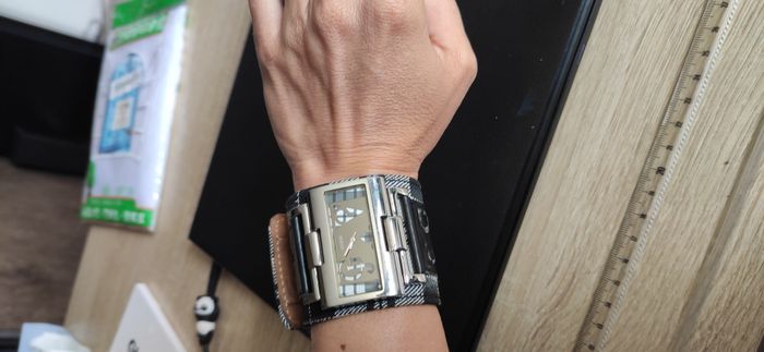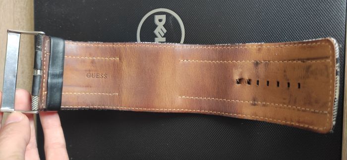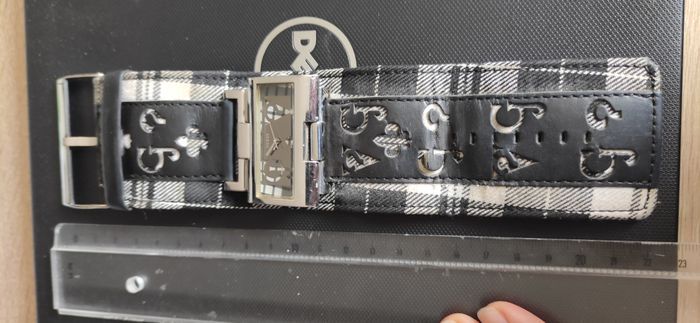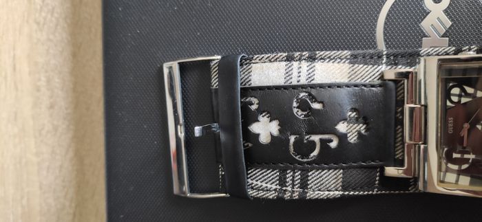 en cuir et métal en très bon état une mini éraflure sur le verre à vendre car je ne la porte plus Il faudra changer la pile