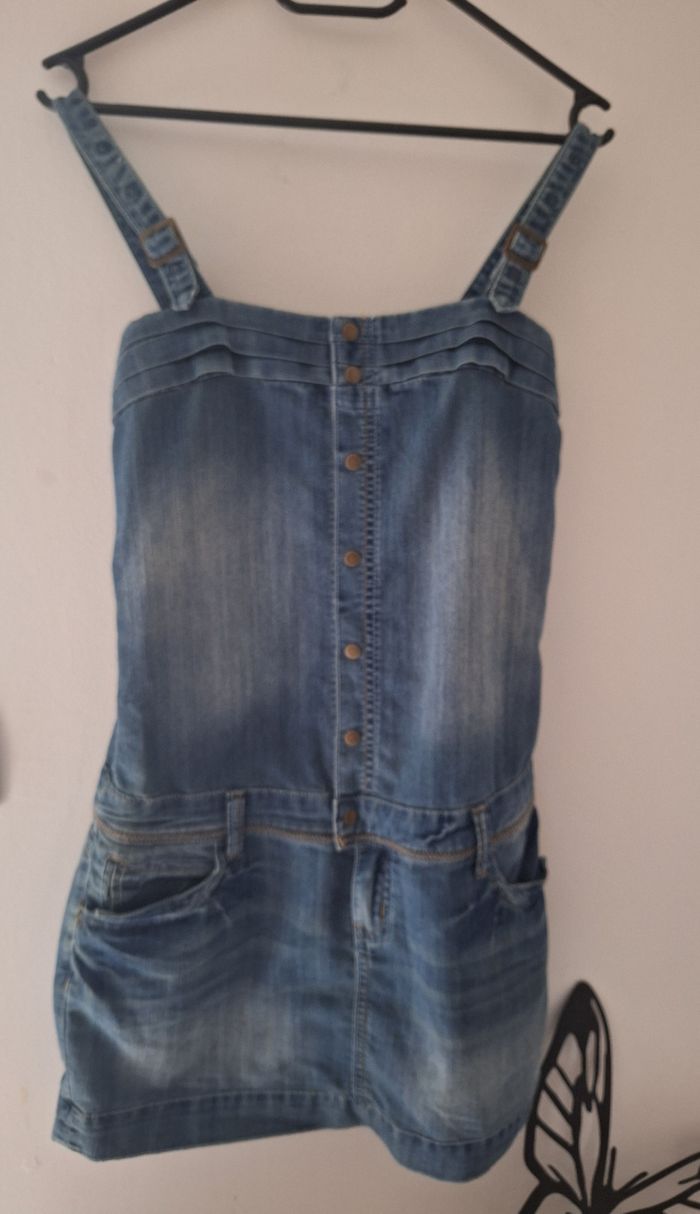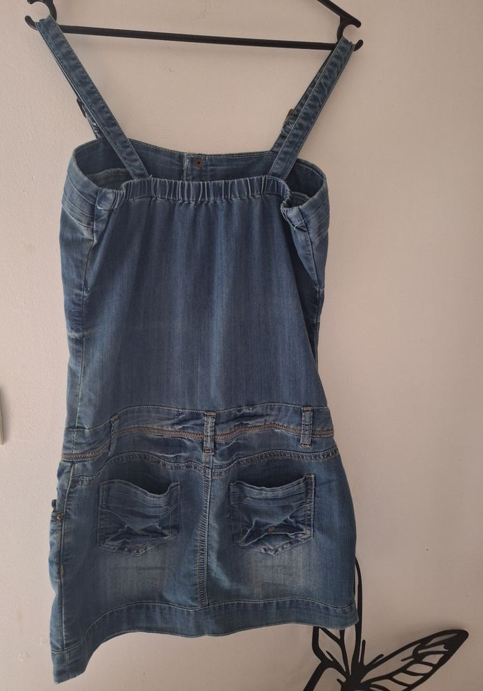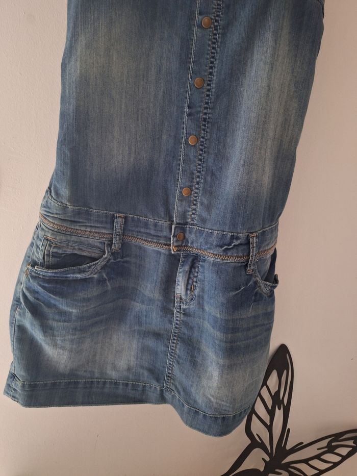 FEMME 36 / S N°1484 robe bretelle , reglables Jeans souple Bleu 45% coton 25% polyester 30% lyocell Longueur avec bretelles 85 cm Taile 36 / s Cache cache 13€ #kelly_femmeT36
