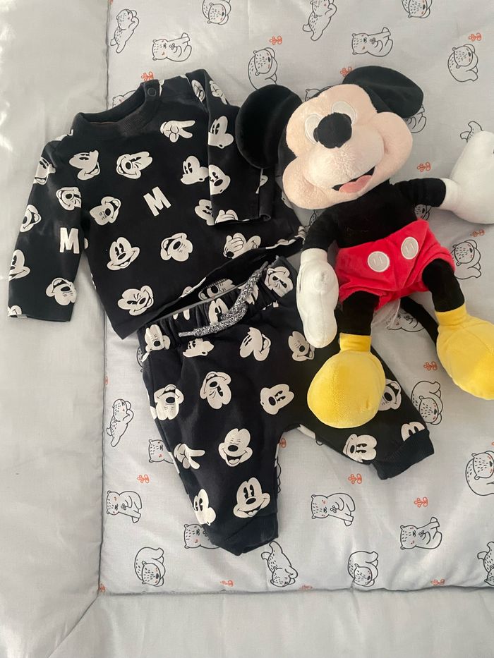 Ensemble Mickey 3 mois T-shirt Cotton Pantalon avec une sorte de matière polaire à l’intérieur