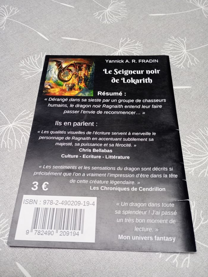 Conte fantastique et mythologique "Le Seigneur noir de Lokarith" de Yannick A. R. Fradin. Dédicacé. Très bon état.