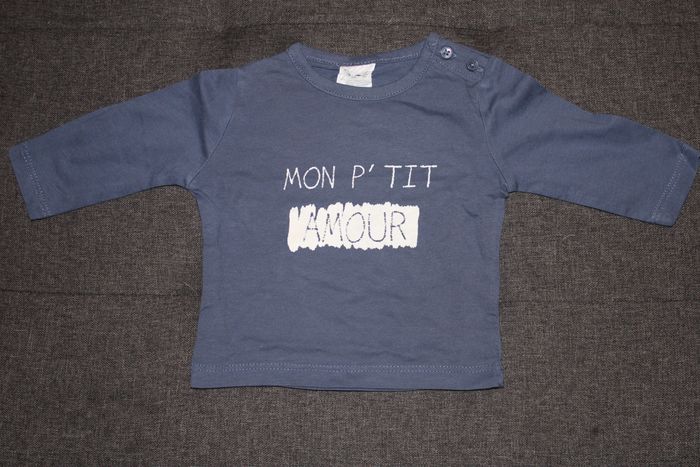 Sous pull bleu marine en bon état bien que les écritures commencent un peu à s'effacer