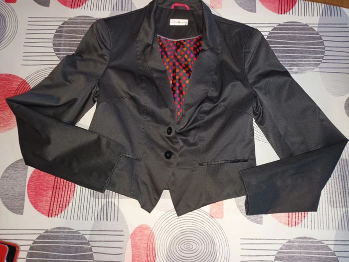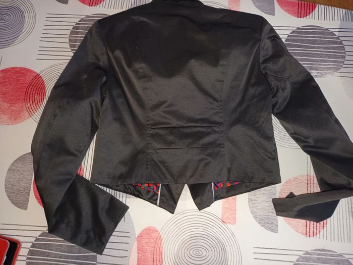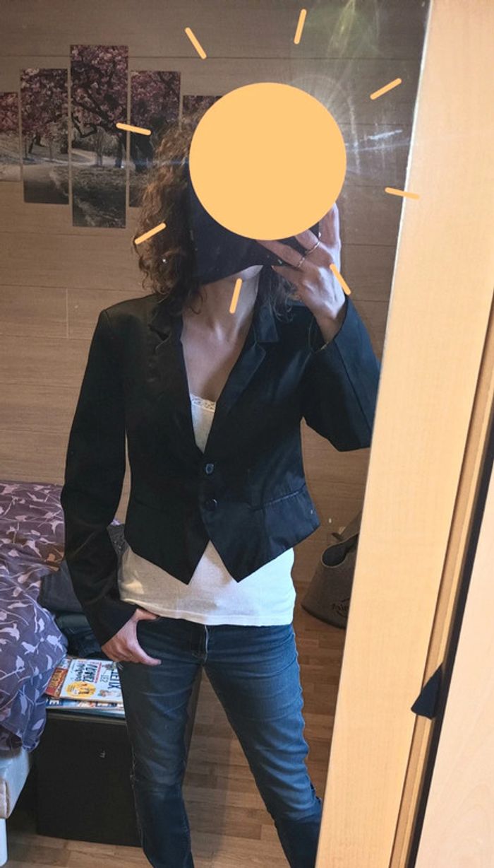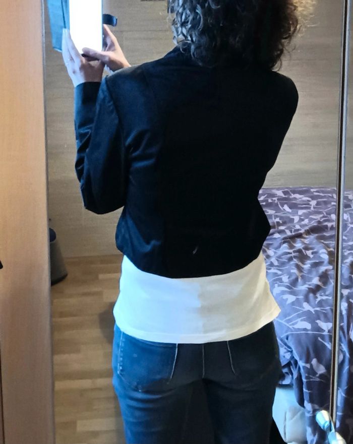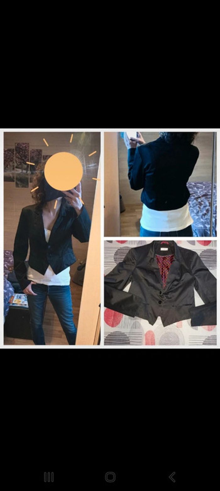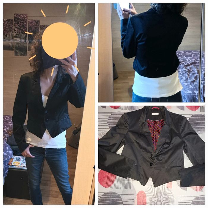 Veste blazer Marque : CACHE CACHE Taille : 36 (pas d'étiquette) Compo : 47% coton 8% nylon 45% polyester Couleur : noir Je mesure 1m66 #montrentesixfemme Les remises sont activées si plusieurs achats sont faits.