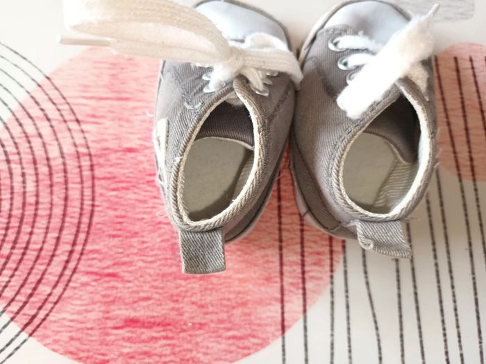 Chaussures souples mixtes Grises Marque : ? Taille : 3/6 mois (pas d'étiquette) #meschaussuresauxpieds #monbebeemilie Les remises sont activées si plusieurs achats sont faits.