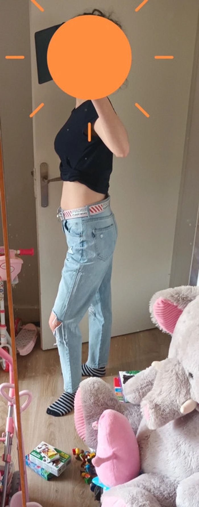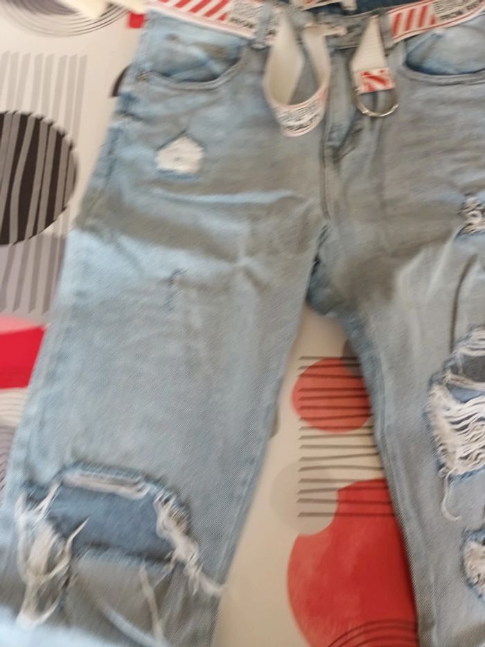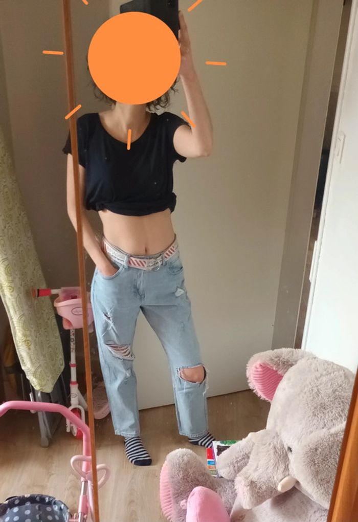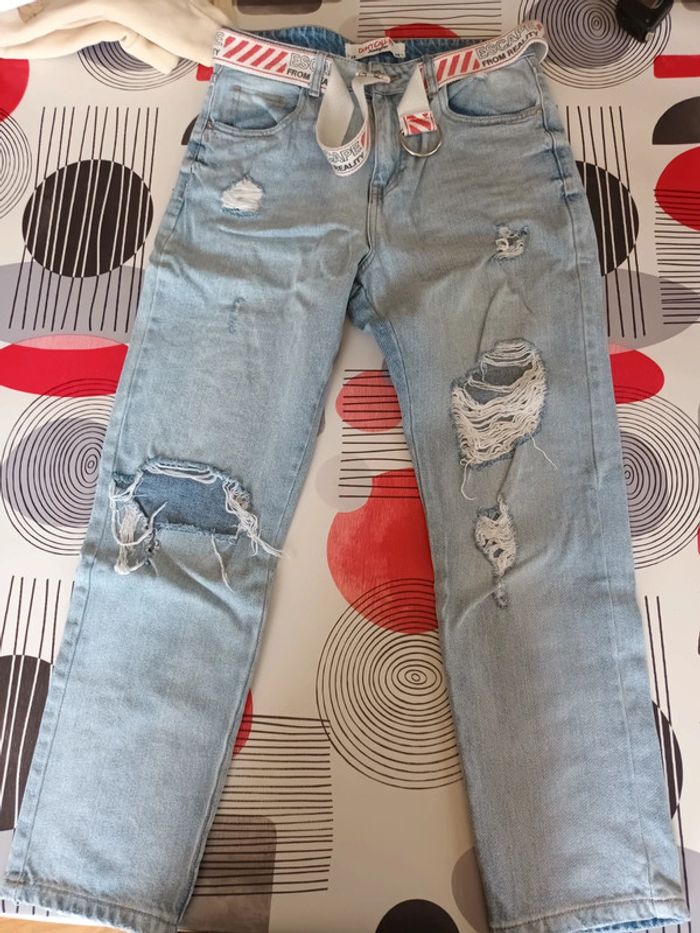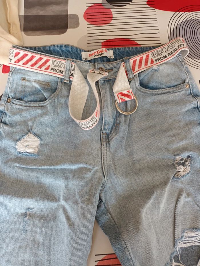 Jeans destroy avec ceinture Marque : Jennyfer Taille : 38 Composition : 100% coton #montrentehuitfemme Les remises sont activées si plusieurs achats sont faits. La liste des filtres # est sur mon profil