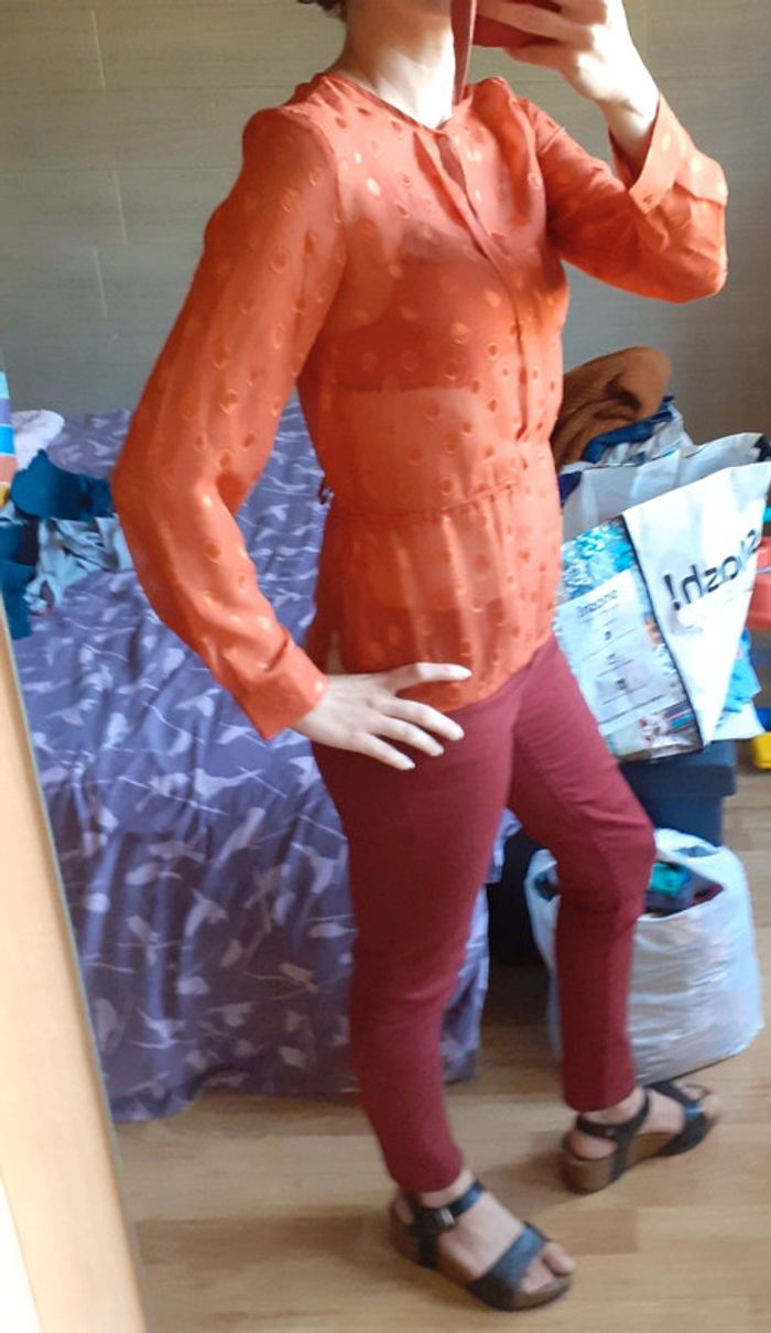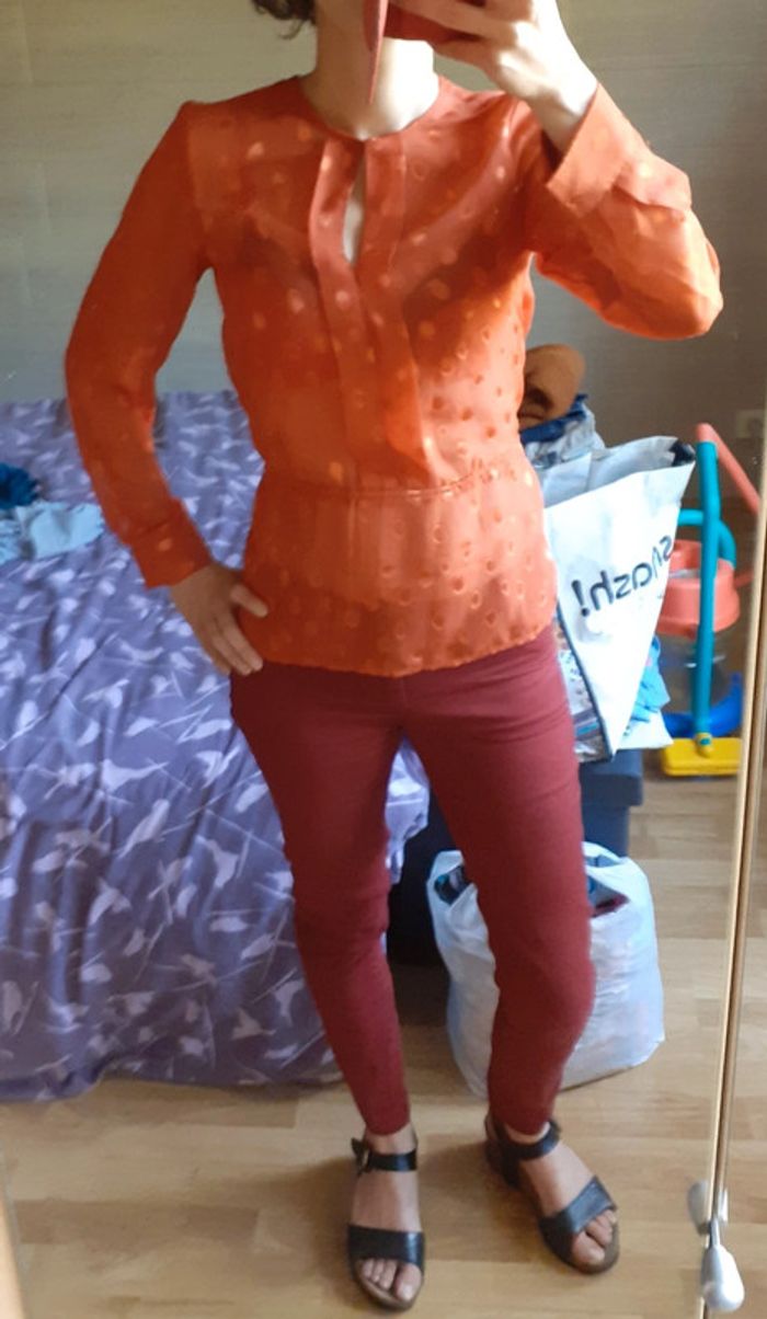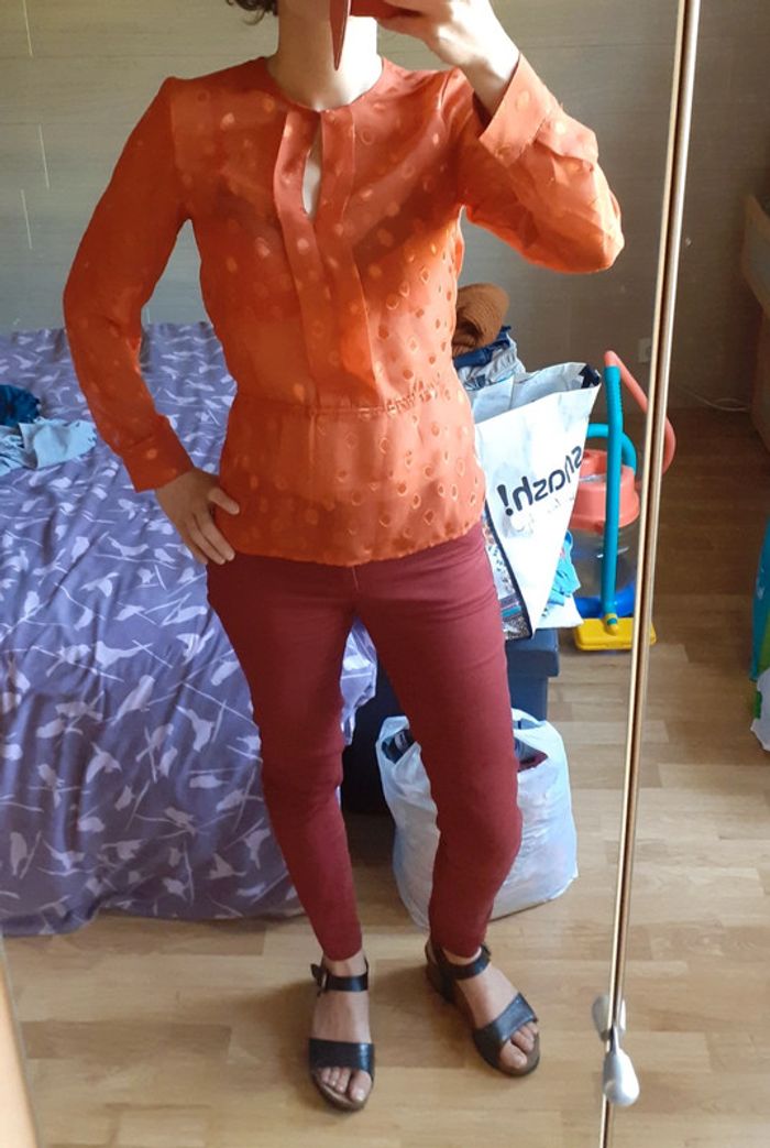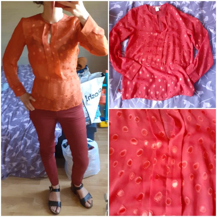 Blouse rouge orangée Taille 34 HetM Lien de serrage à la taille #montrentequatrefemme Les remises sont activées si plusieurs achats sont faits La liste des filtres # est sur mon profil