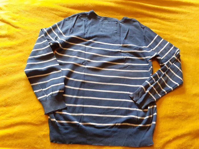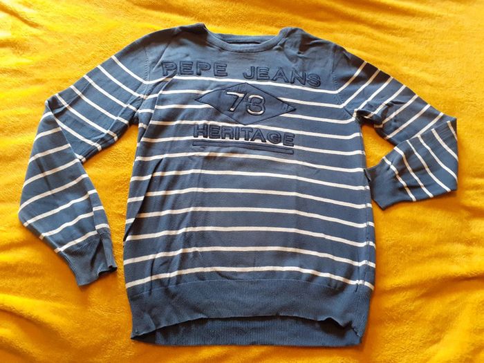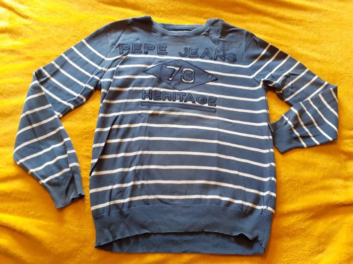 Pull col rond bleu rayé blanc 100 % coton Marque : PEPE JEANS Taille L #monhommedressing Les remises sont activées si plusieurs achats sont faits La liste des filtres # est sur mon profil