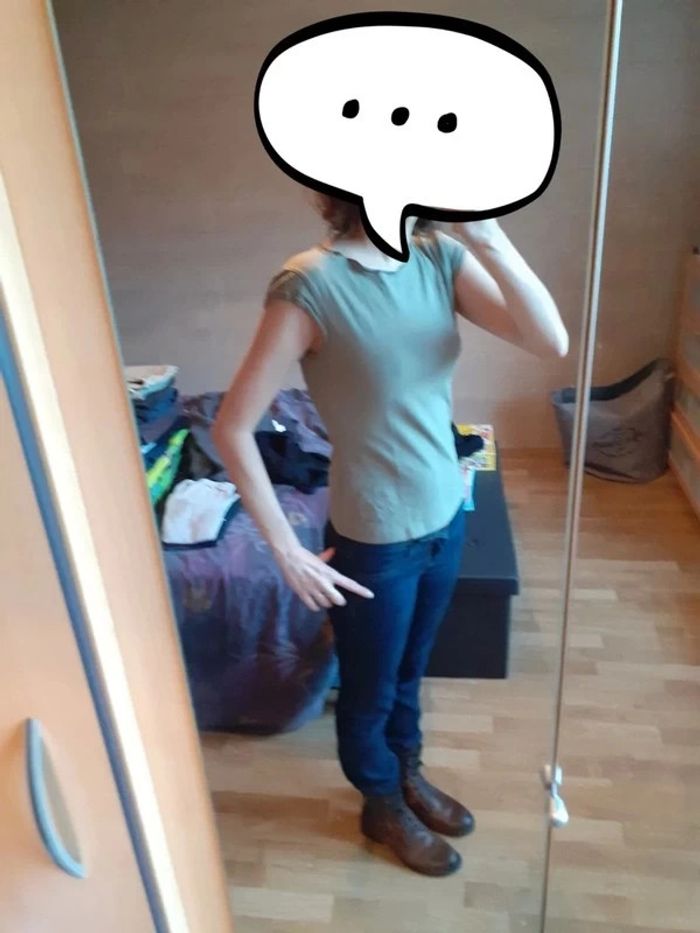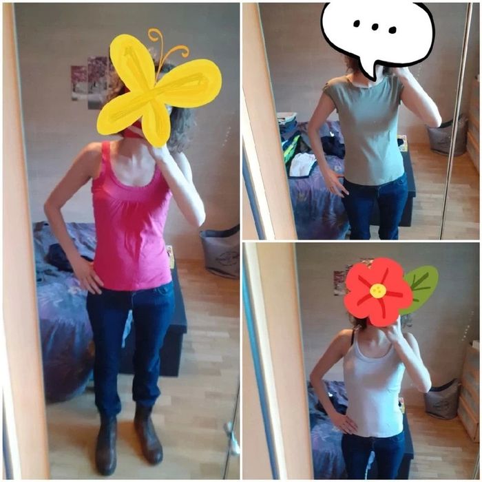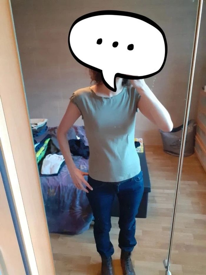 Lot 3 hauts 1 gris clair, brassière intégrée Marqué taille M mais correspond plutôt à un 36 Marque : Cool Attitude 95% coton 5% elasthanne 1 rose Taille 1 Marque: Spot 100% coton 1 kaki Taille 36 (plus d'étiquette) 95% coton 5% elasthanne #montrentesixfemme Les remises sont activées si plusieurs achats sont faits La liste des filtres # est sur mon profil