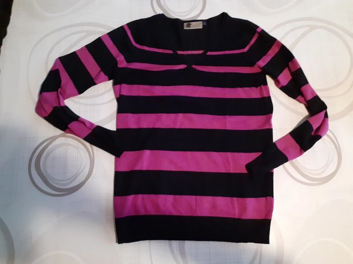 Pull rayé col V taille S état neuf - photo numéro 1