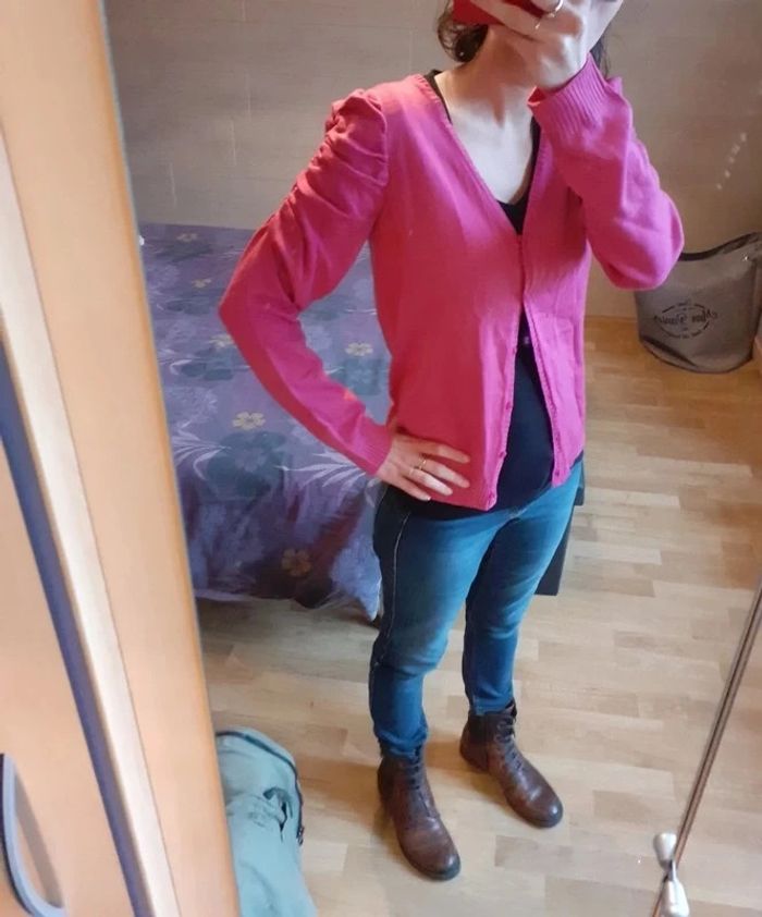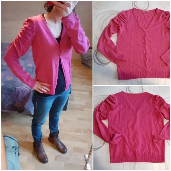 Gilet rose à boutons Épaules froncées Marque: Blancheporte Taille 38/40 100% acrylique Neuf #montrentehuitfemme Les remises sont activées si plusieurs achats sont faits La liste des filtres # est sur mon profil