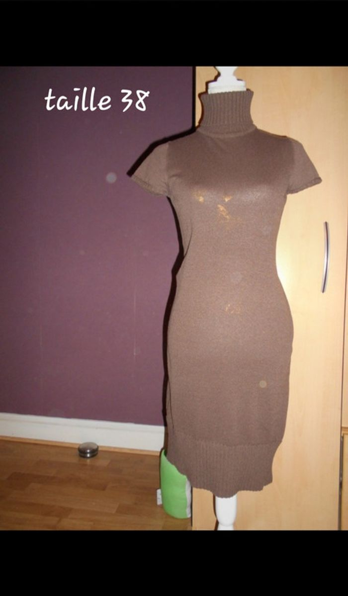 Robe Taille 38 (étiqueté taille 40 mais taille petit) Robe pull col roulé marron Aisselle au bas : 77 - 78 cm MIM 70% acrylique 30% polyamide #montrentehuitfemme #robe #hiver