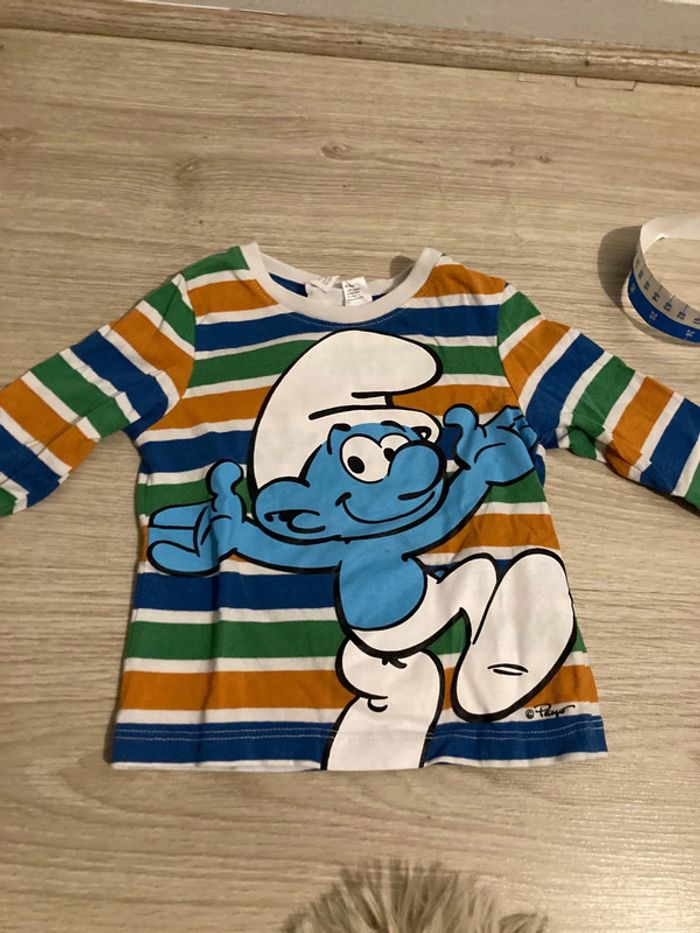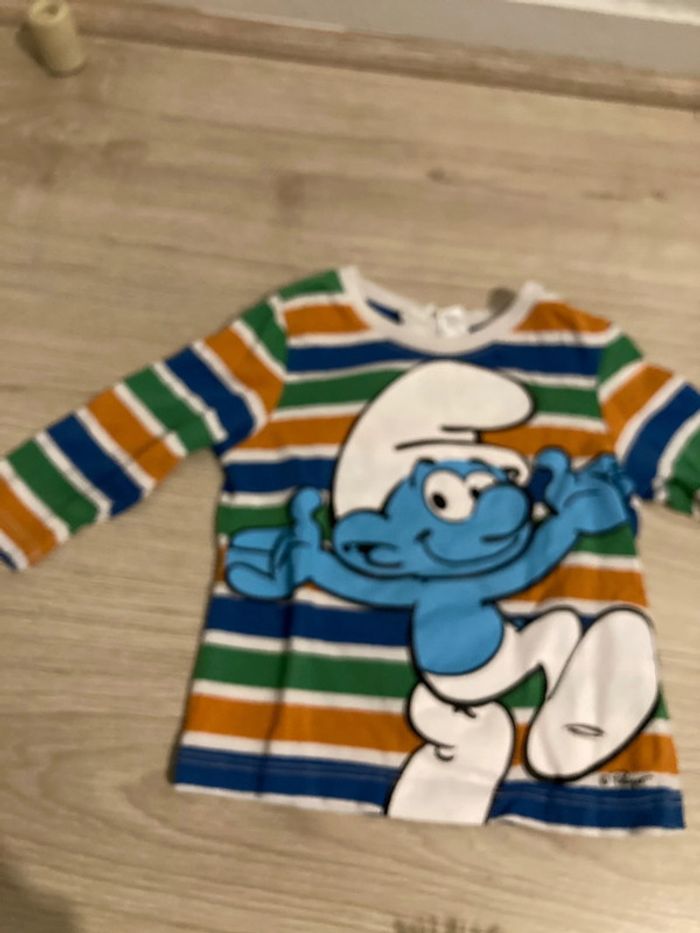 T-shirt manches longues bébé garçon en taille 4/6 mois les Schtroumpfs