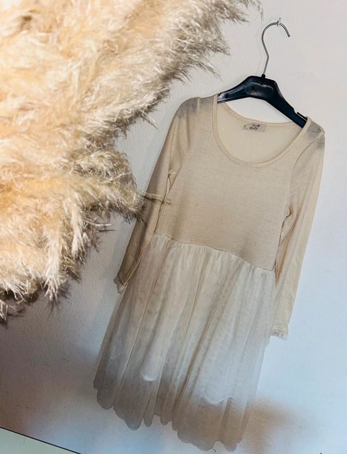 Très jolie robe Style un peu bohème De la marque mini Molly Taille 10/12 ans Elle est de couleur beige & crème. 6€