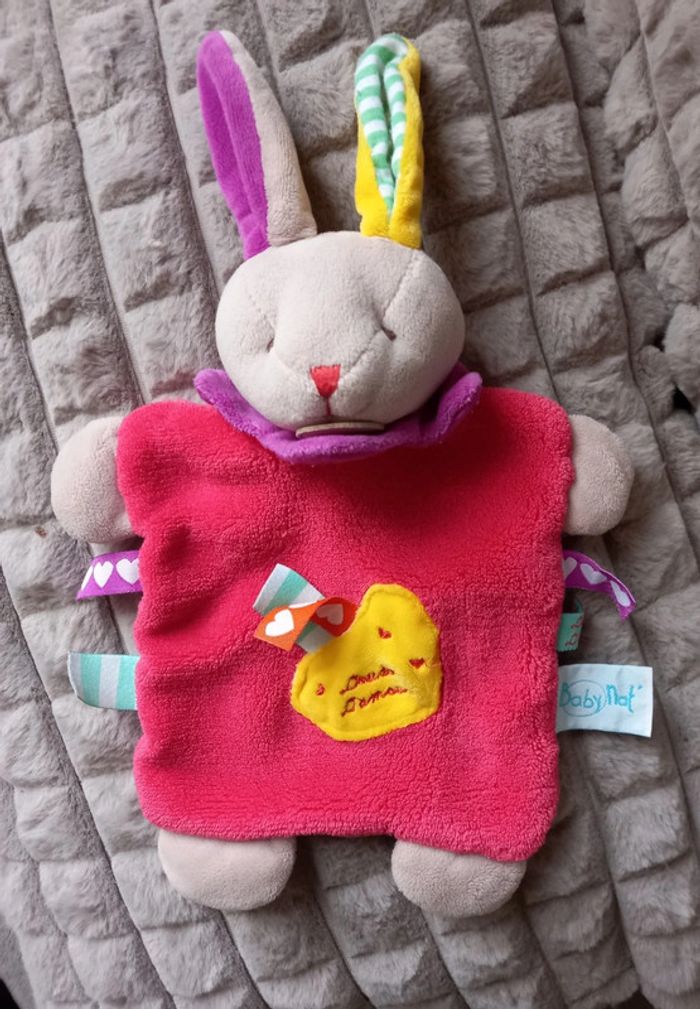Doudou peluche Baby Nat Doudou d'amour lapin plat multitexture multicolor - photo numéro 1