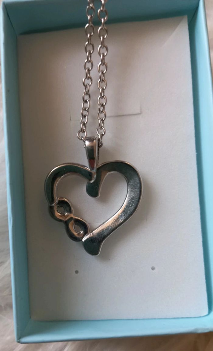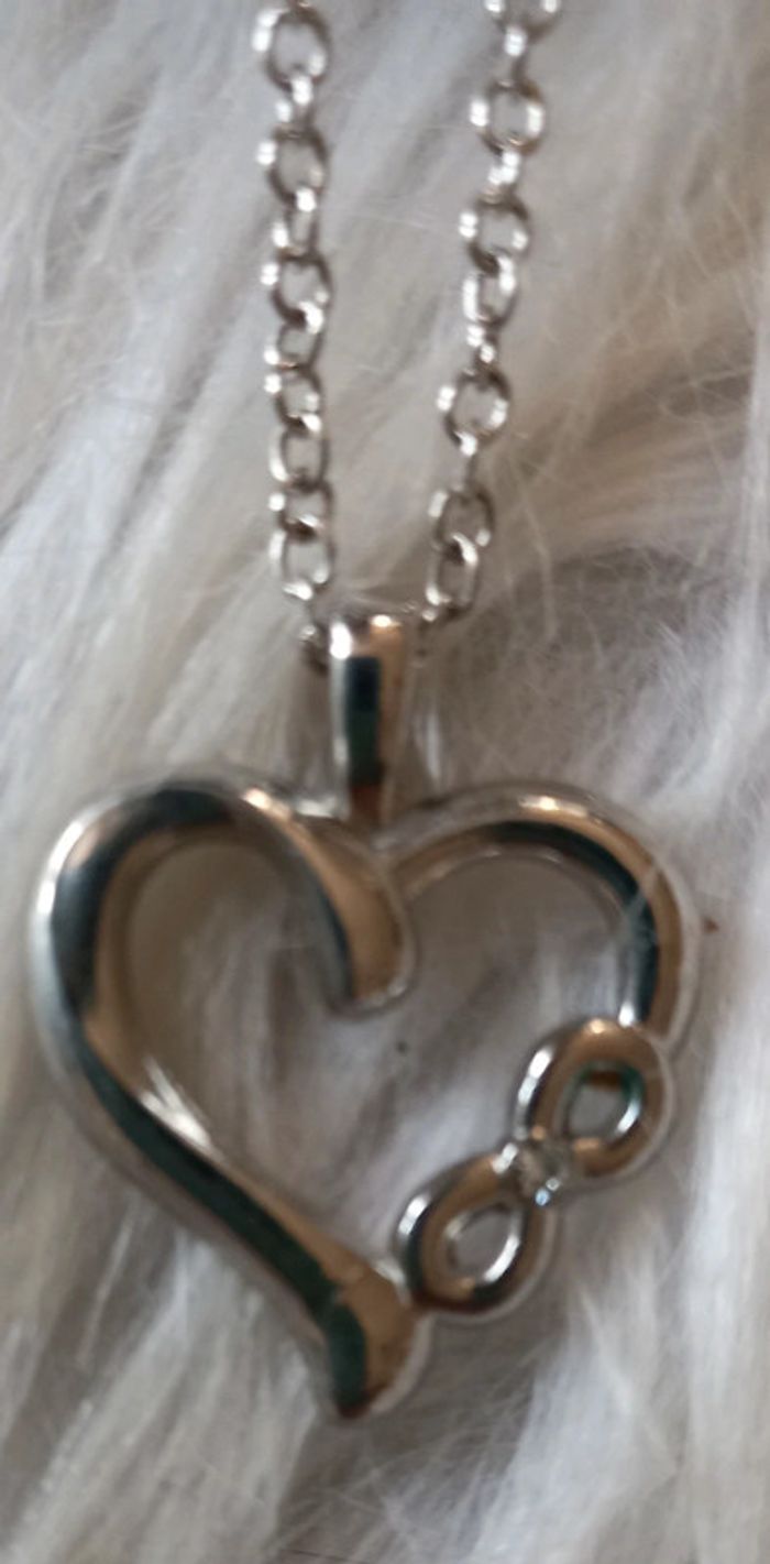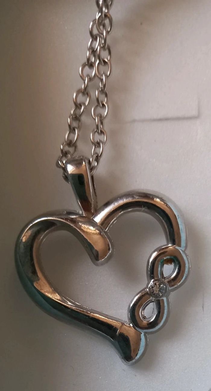 Collier argenté avec motif cœur et infini Acier inoxydable Longueur collier : 22 cm + 4 cm Diamètre cœur infini : 3 sur 3 cm