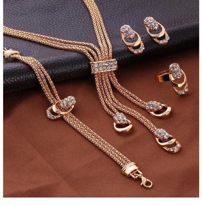 Ensemble de bijoux pour femmes, collier, boucles d'oreilles pour oreilles percées, bague réglable, bracelet, strass, couleur or Rose Type de Métaux: alliage de zinc Pour les mesures voir photos