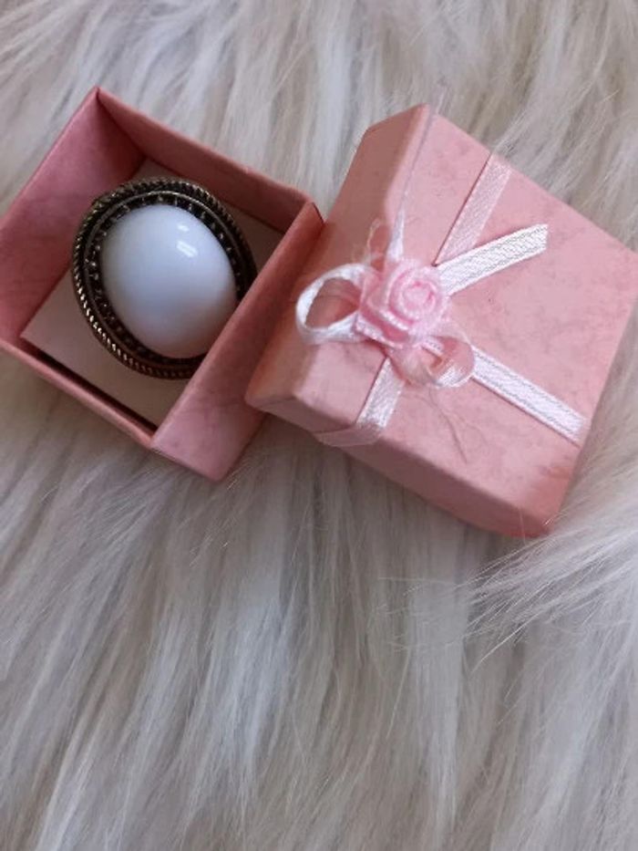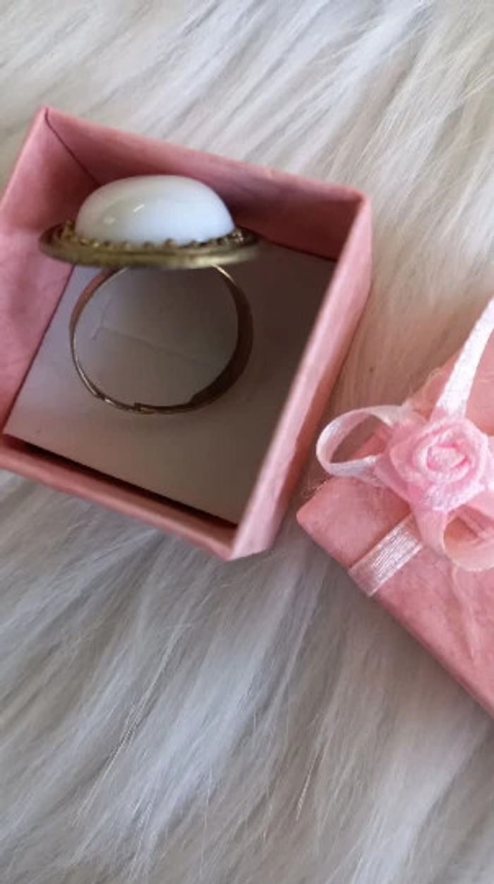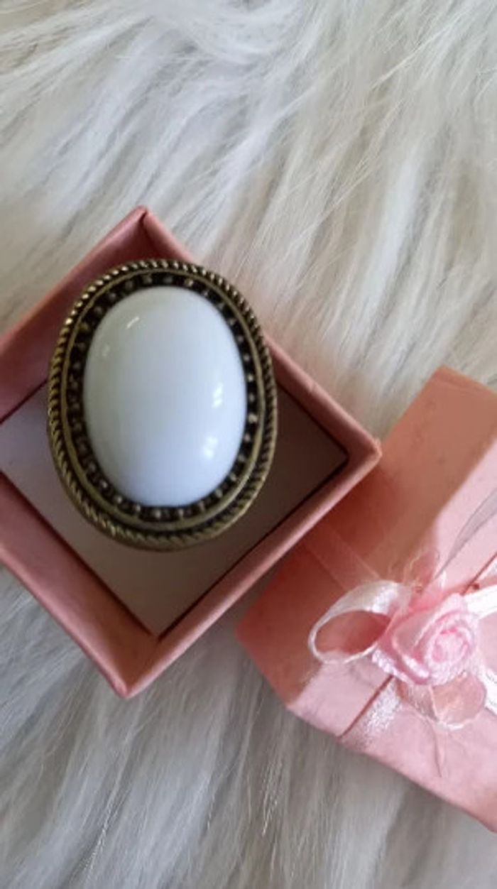 Bague Pierre blanche -Ajustable-Dorée vieillie - photo numéro 2