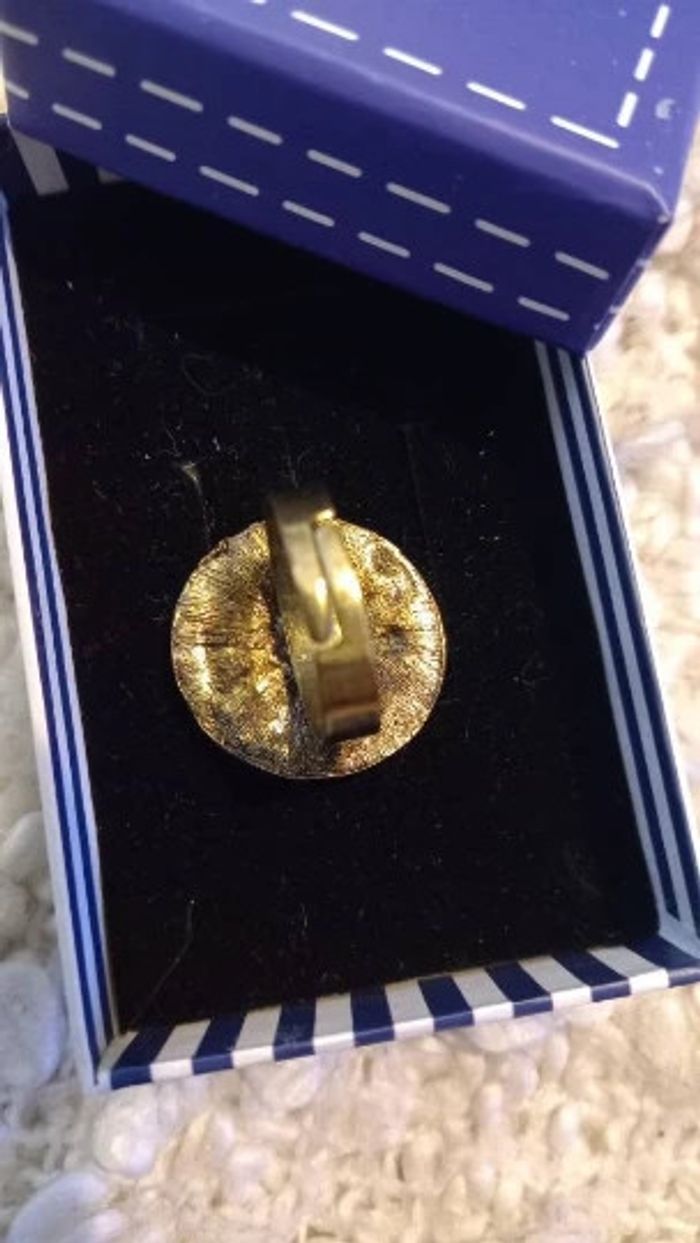 Bague fantaisie fleur émaillée marron, strass, dorée vieillie -Ajustable - photo numéro 4
