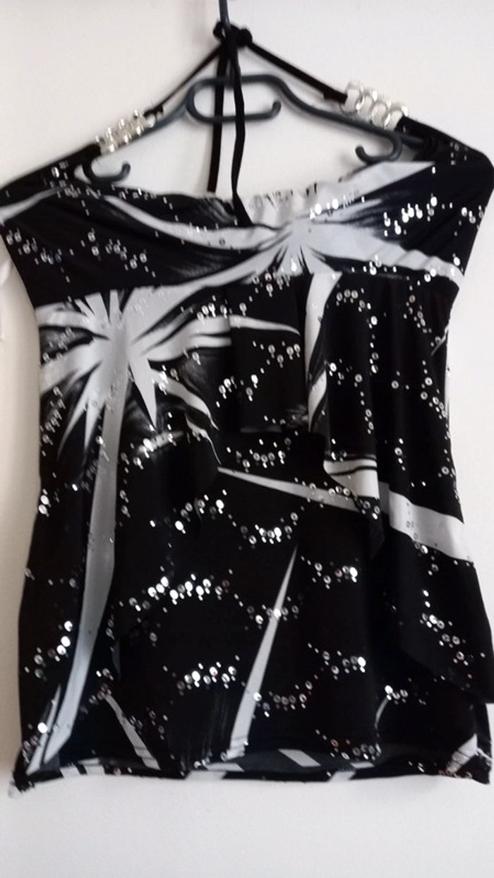 Haut de fêtes- Dos nu noir ,blanc et argentés Taille : M - photo numéro 1