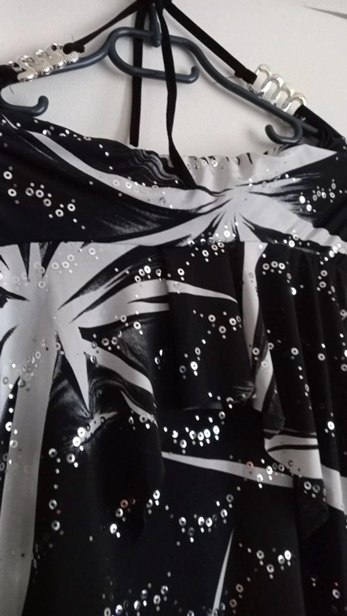 Haut de fêtes- Dos nu noir ,blanc et argentés Taille : M - photo numéro 3