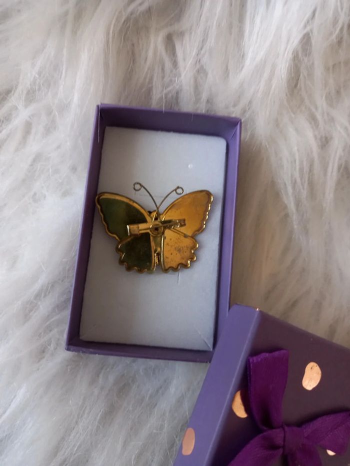 Broche en forme de papillon de couleurs rouge et orange Couleur dorée Hauteur : 3 cm Largeur : 4 cm