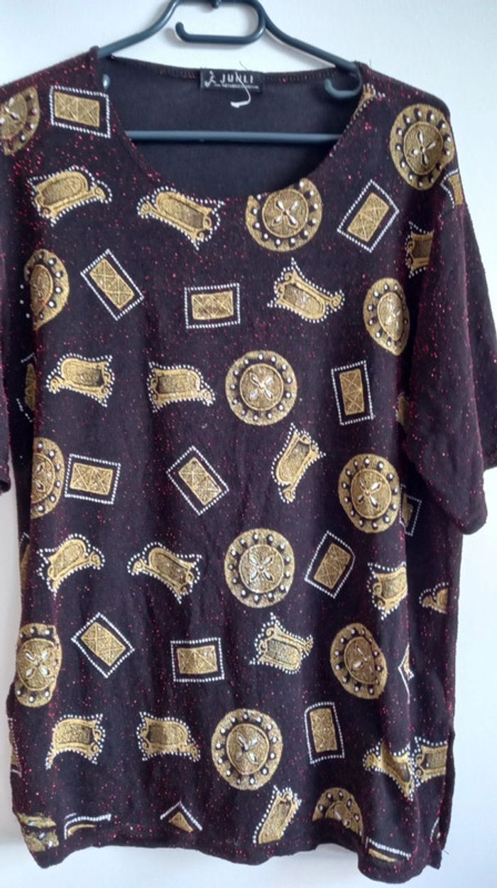 Haut de femmes rouge pailletés et dorés Taille : 42 - photo numéro 1