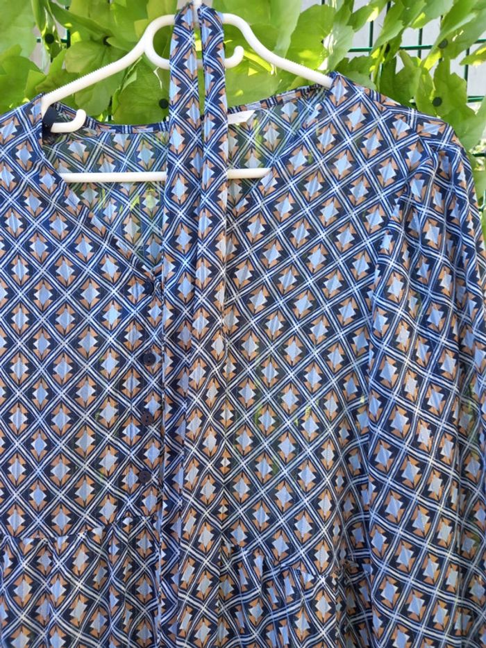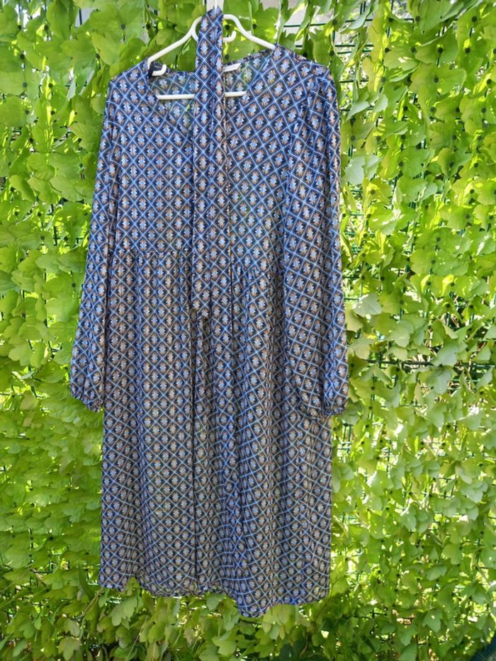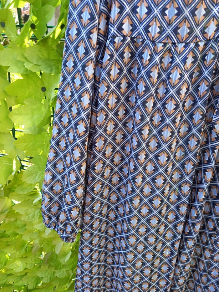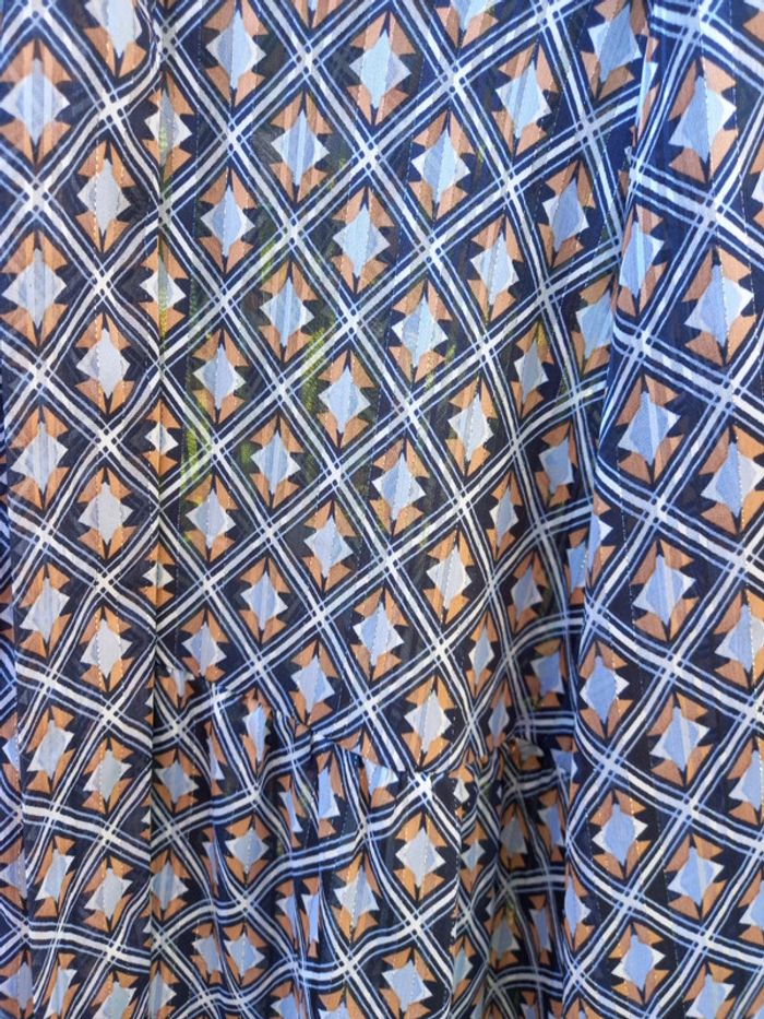 Robe légère d été avec motifs et argenté brillants ainsi que sa ceinture Longueur : 117,5 cm Longueur manche : 62 cm Taille poser à plat : 52 cm Largeur aisselle à aisselle : 56 cm Matieres : 98 % polyester 2 % fibres métalliques Marque : Only Taille : XL État neuf