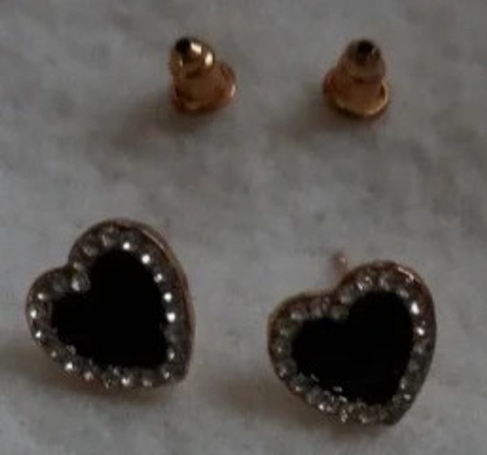 Petites paires de boucles d'oreilles petits cœurs noirs et autour petites pierres blanches brillantes Boucles d'oreilles à trou Diamètre : 1,5 cm Article neuf