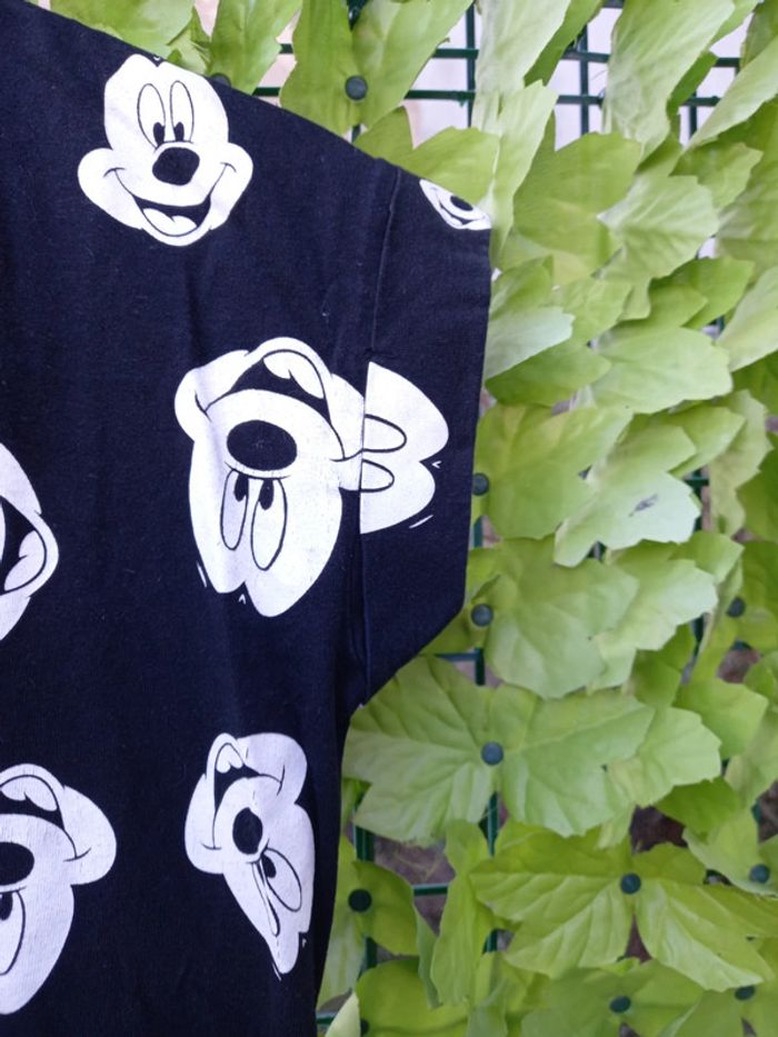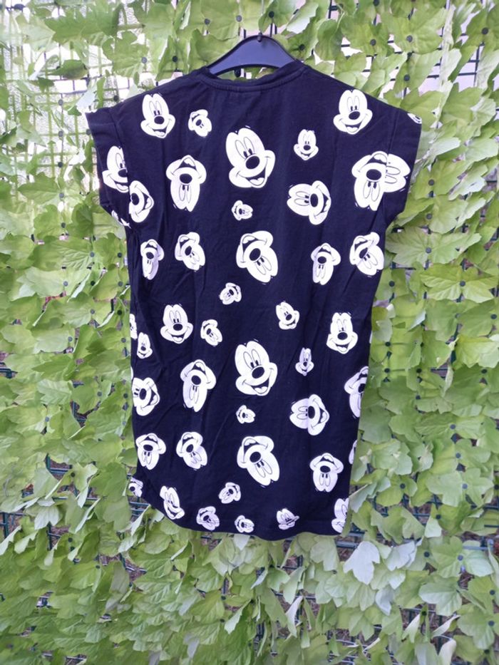 T-Shirt femmes Mickey de couleurs noirs et blancs Manches courtes Longueur : 66,5 cm Longueur à partir des sous bras : 45 cm Longueur manche : 3,5 cm Largeur aisselle à aisselle : 45,2 cm Matiere : 100 % coton Marque : Disney Taille : 34 État neuf