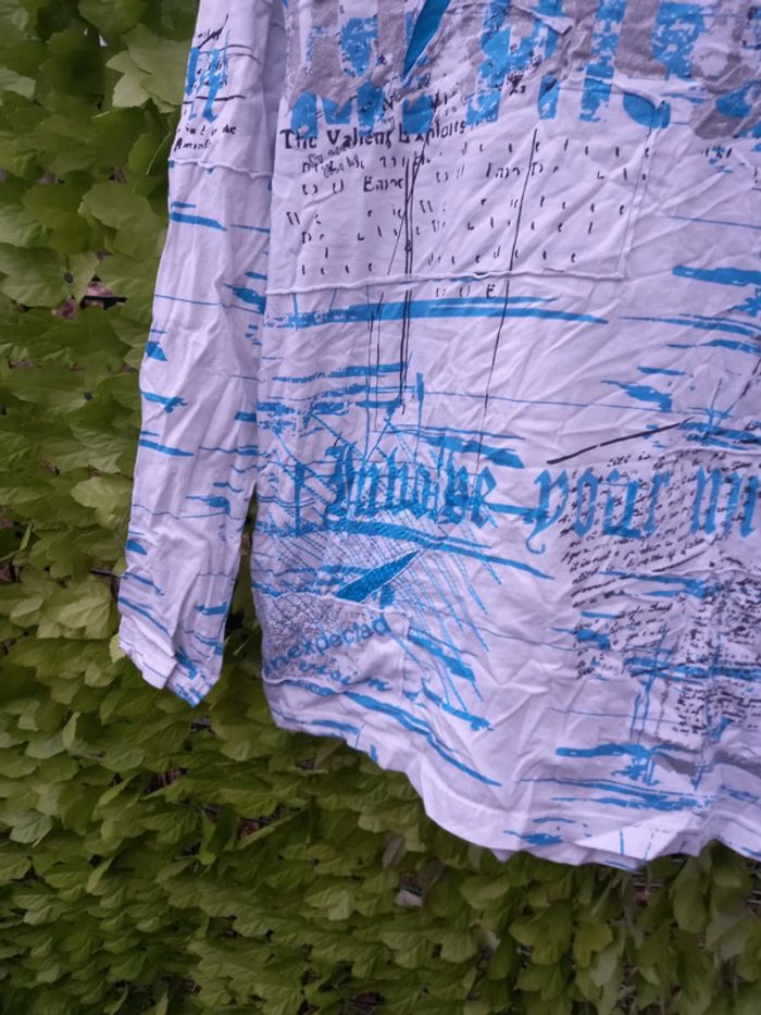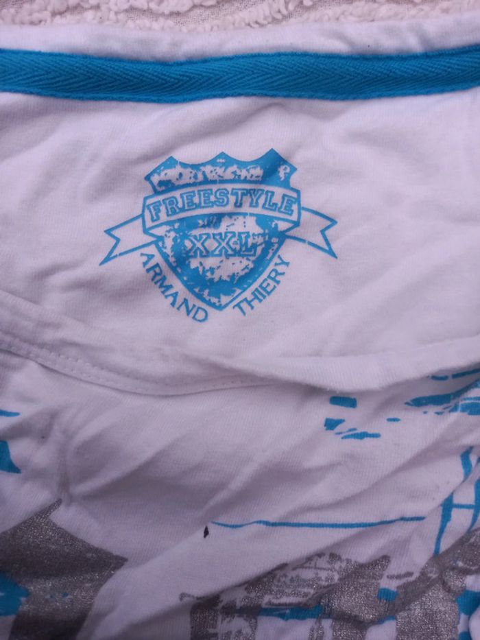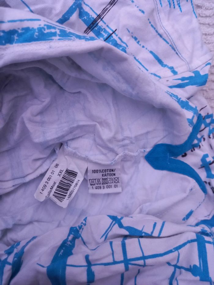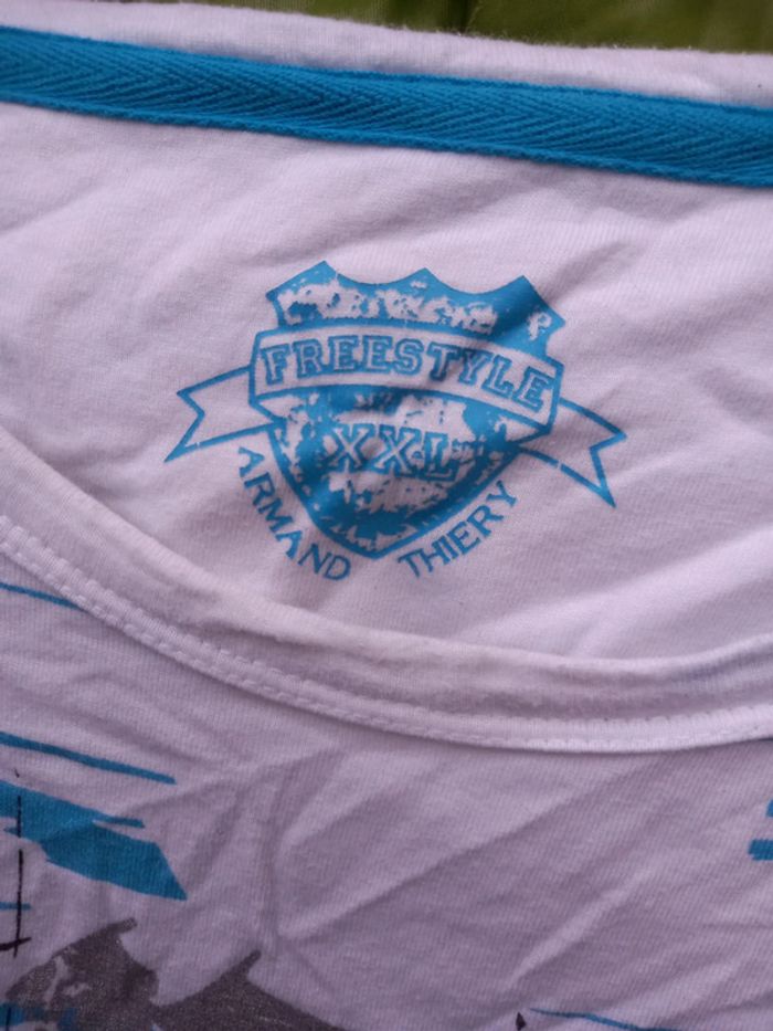 Sweat hommes blanc ,noir et bleu cian manches longues avec motifs Longueur : 70,5 cm Longueur à partir des sous bras : 44 cm Longueur manche : 51,5 cm Largeur aisselle à aisselle : 60 cm Matiere : 100 % coton Marque : Armand Thiery Taille : Xxl En parfait état