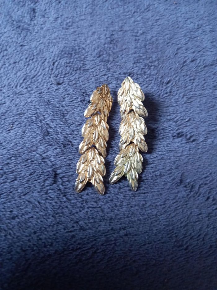 Boucles d'oreilles Fantaisie à trou feuillages tombant de couleurs doré Article d occasion mais reste en bon état quand même