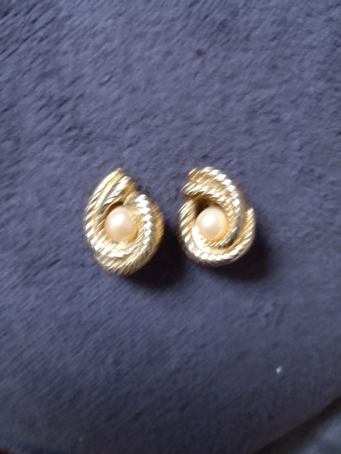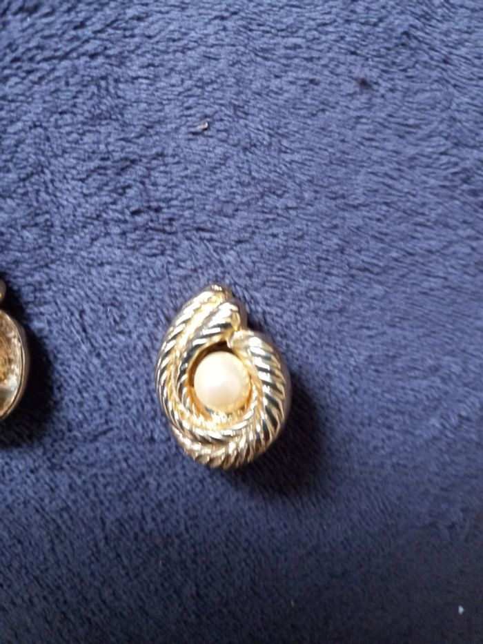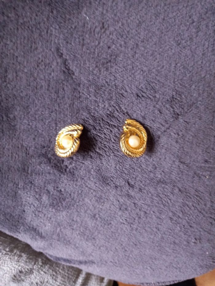 Paire de boucles d'oreilles à clips de couleur doré avec formes et une perle nacré à l intérieur Article neuf sans emballage