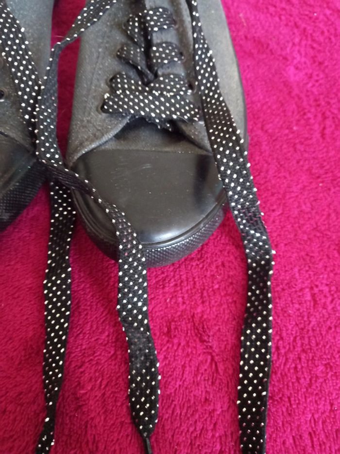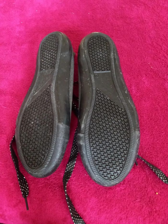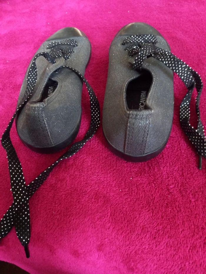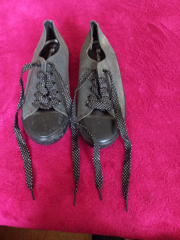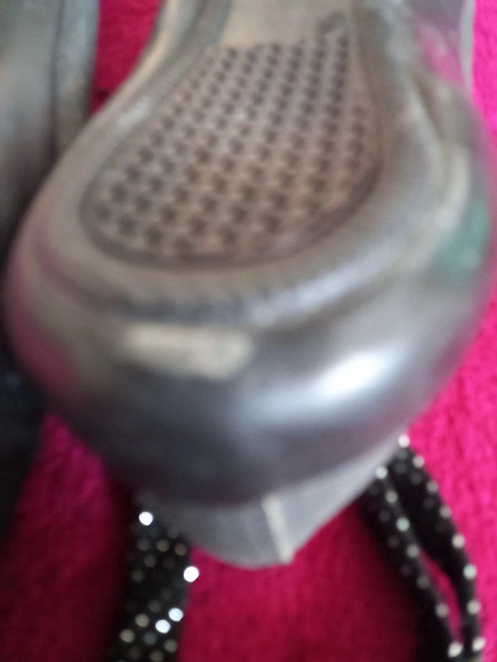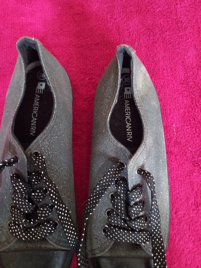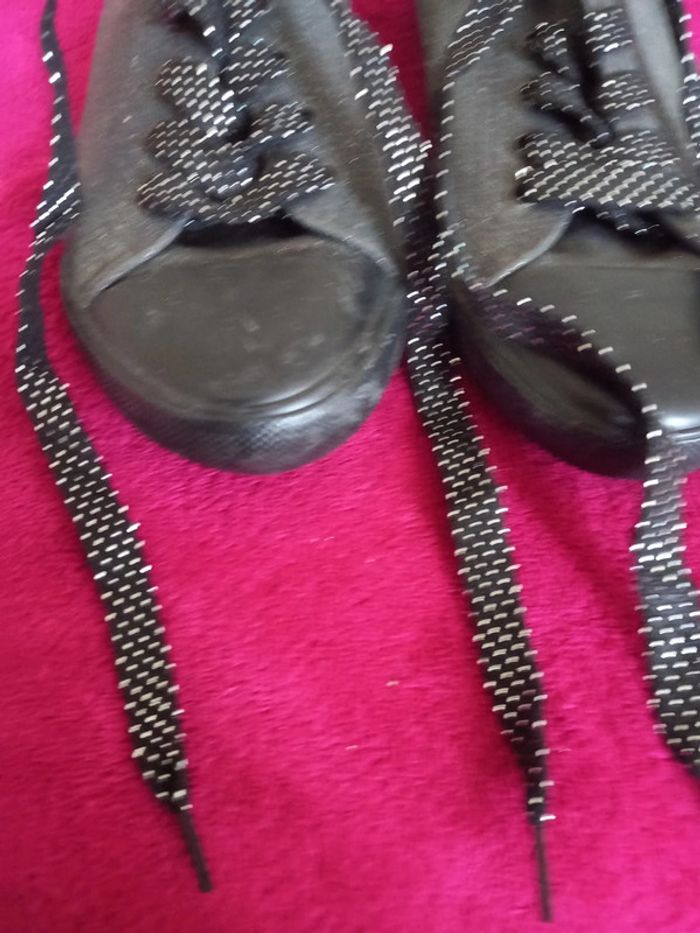 Baskets femmes noir et brillantes argenté une légère usure comme le montre la photo Sinon en très bon état Pointure : 38