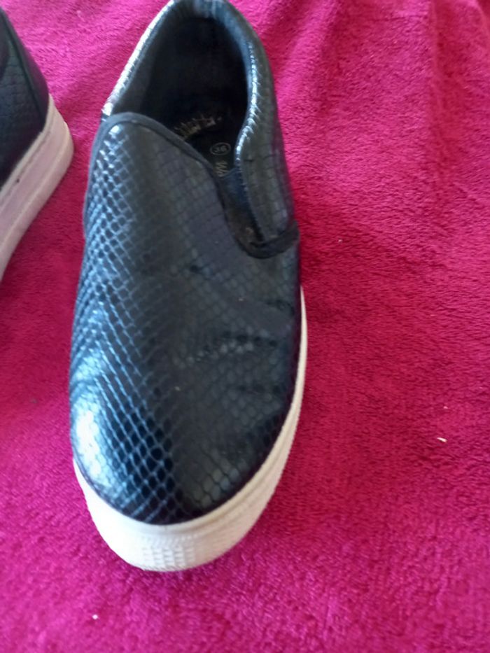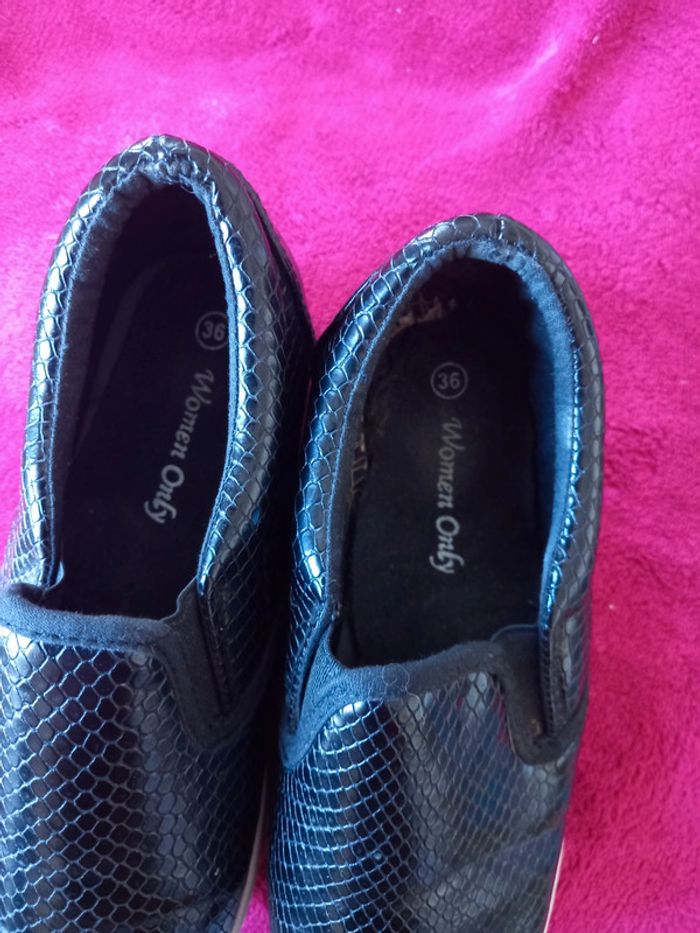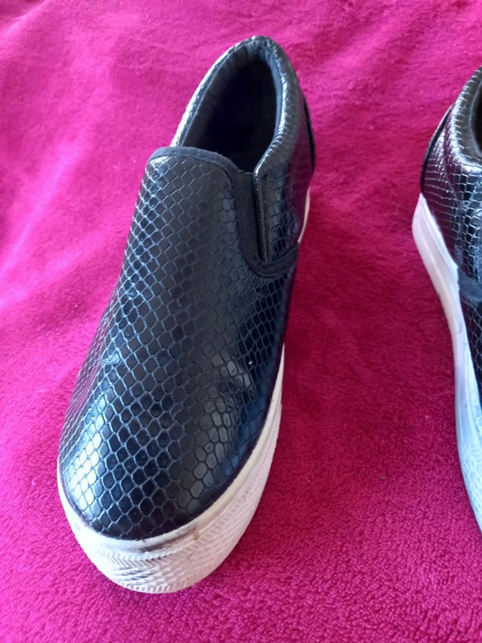 Baskets femmes de couleur noires avec style écailles, sans lacets juste à enfiler Marque : women Only Pointure : 36 En bon état