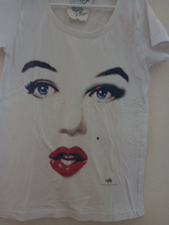 Long T-Shirt blanc avec motifs grand visage Longueur : 67,5 cm Longueur à partir des sous bras : 44,5 cm Longueur manche, : 15,5 cm Largeur aisselle à aisselle : 44,07 cm Marque : 20 âge authentique et original Taille : L Neuf sans étiquette