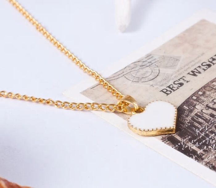 Collier fantaisie doré avec coeur blanc nacré Article neuf dans emballage