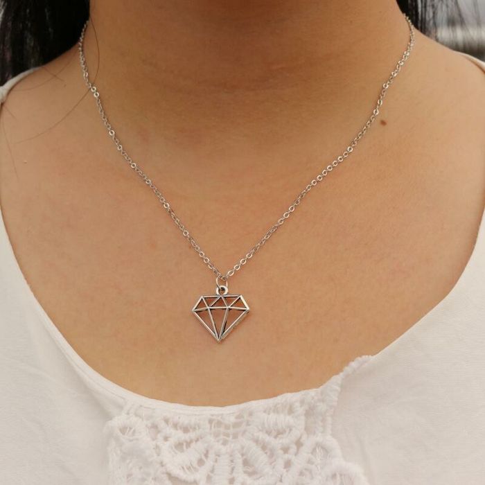 Collier femme avec diamant collier et pendentif argenté Article neuf