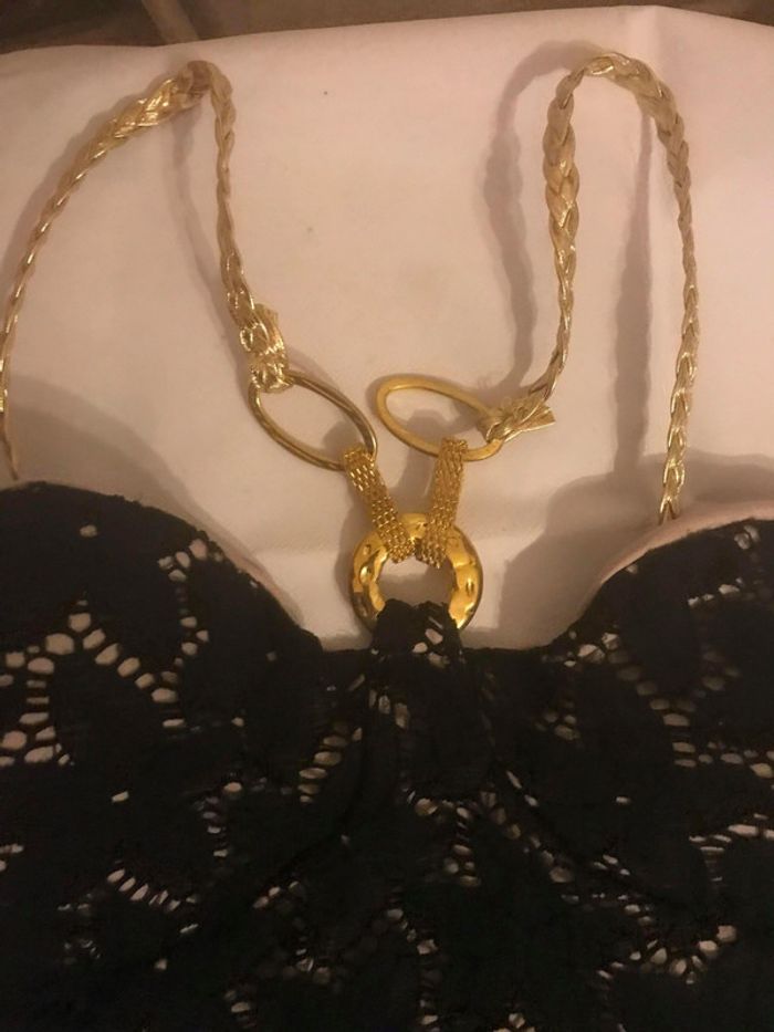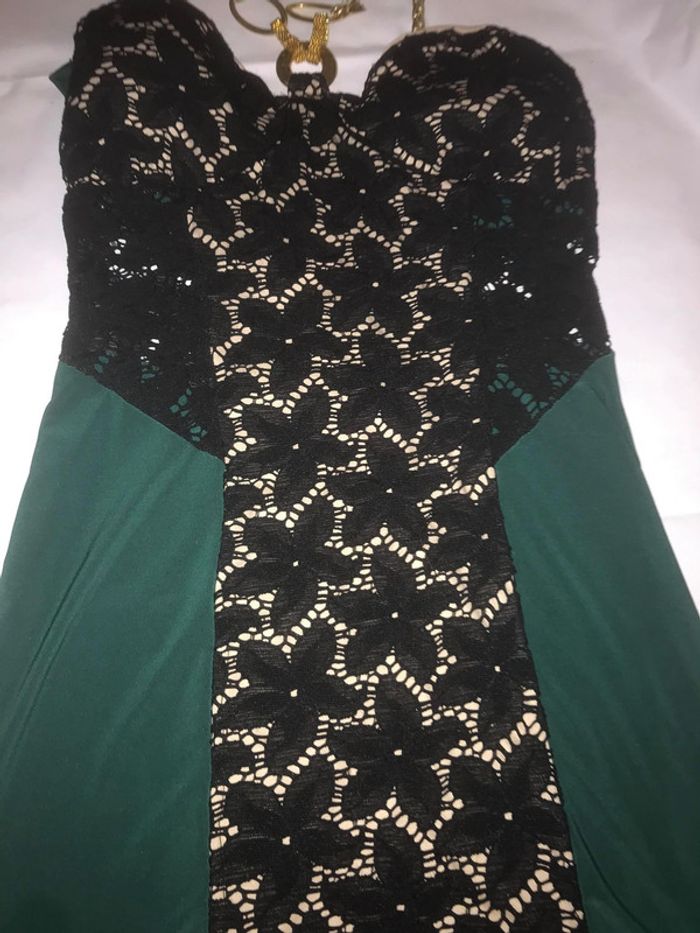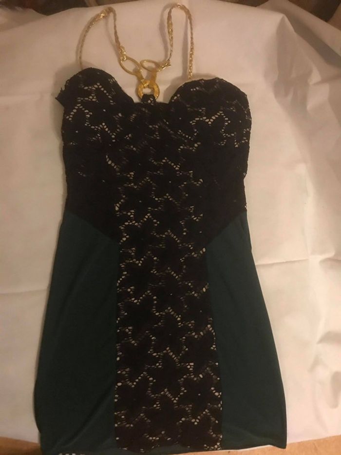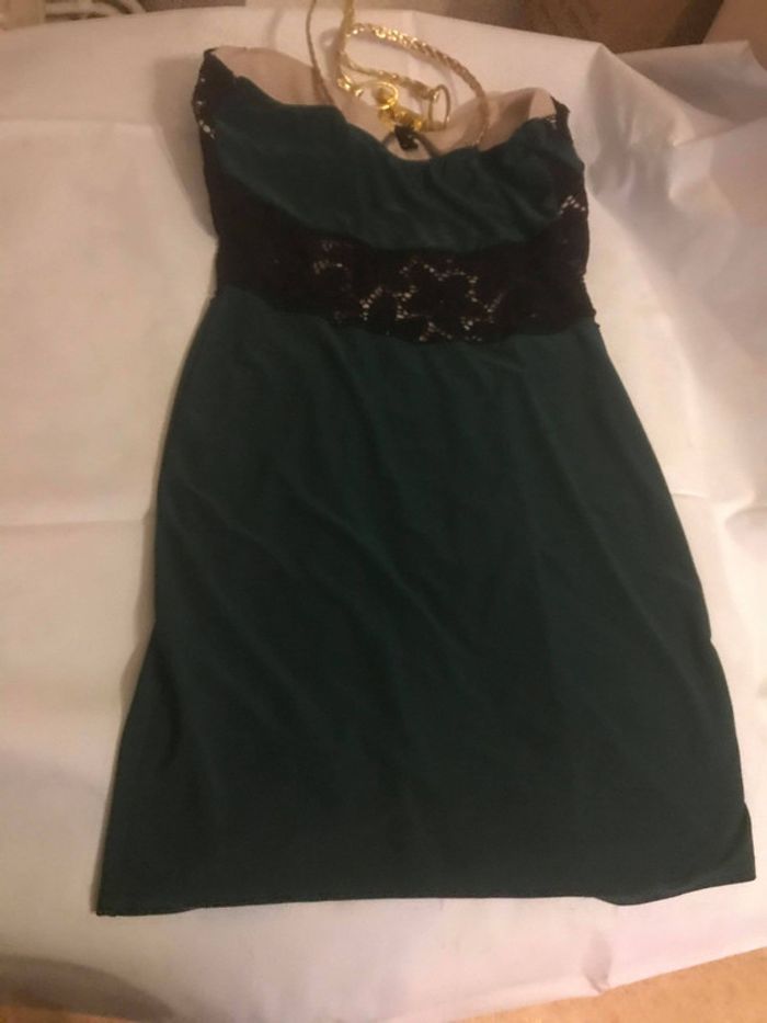 Robe bustier de couleur vert foncé avec bonnets pour la poitrine également de couleur noir , bretelles doré Taille : Unique représente un 36/38 En très bon état