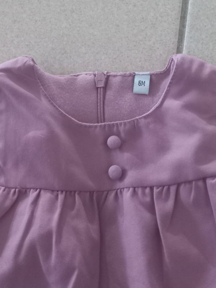 Robe épaisse en très bon état 100% polyester Doublure :100% coton Garnissage: 100% polyester Couleur: rose/ parme Taille: 6 mois