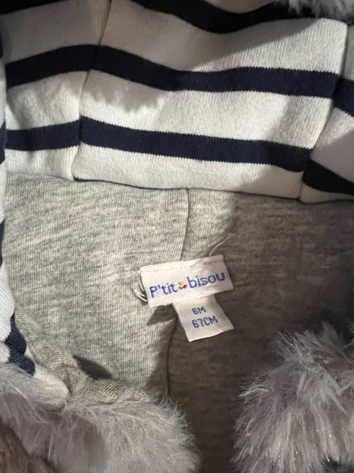 Combinaison chaude pour bébé couleur grise, très bon état, marque p’tit bisou, 6 mois 67cm