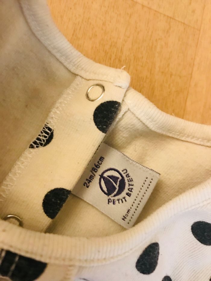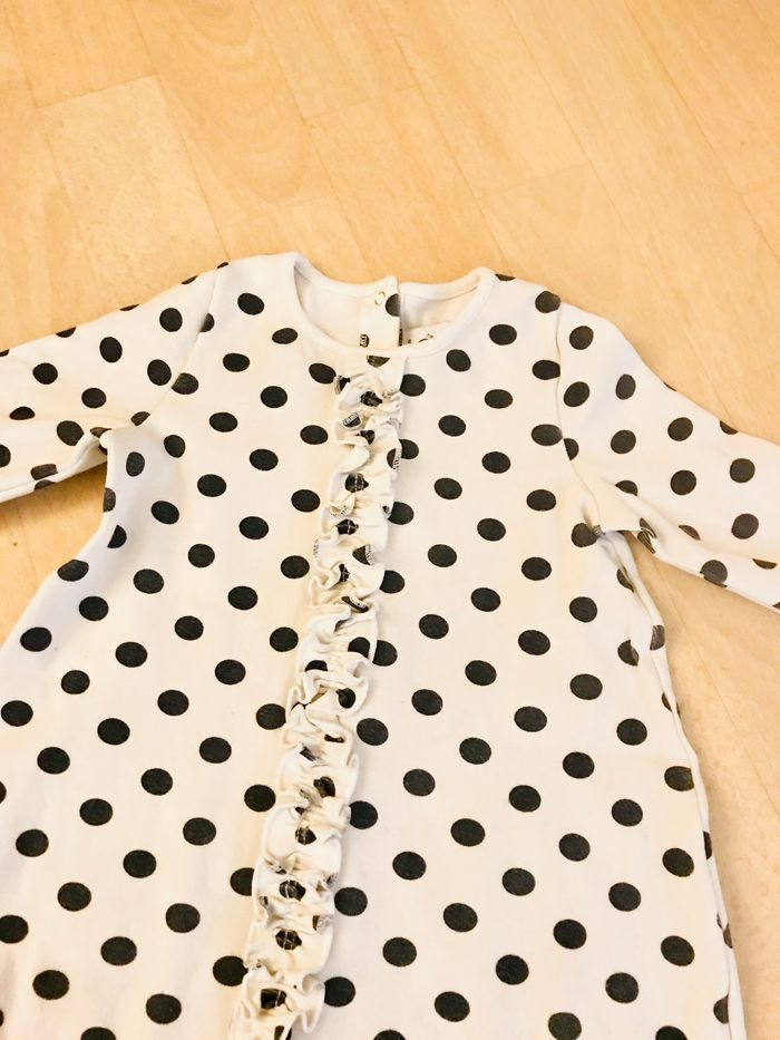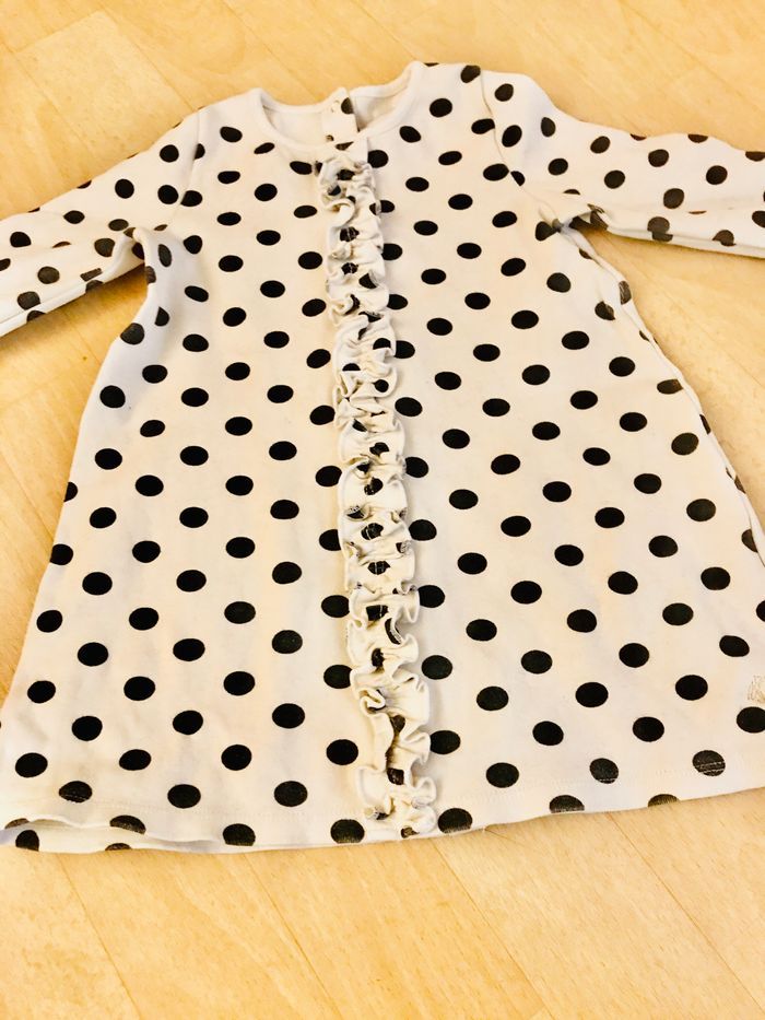 Robe fille taille 24 mois Petit bateau Couleur blanc imprimé cercle noir 96 % coton 4 % élasthane En bon état