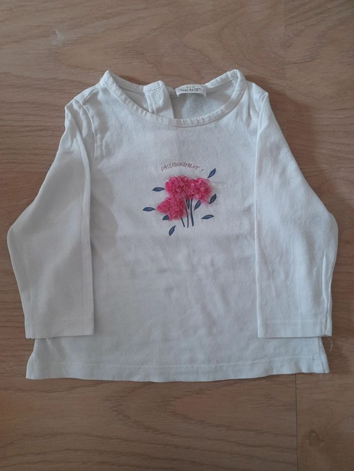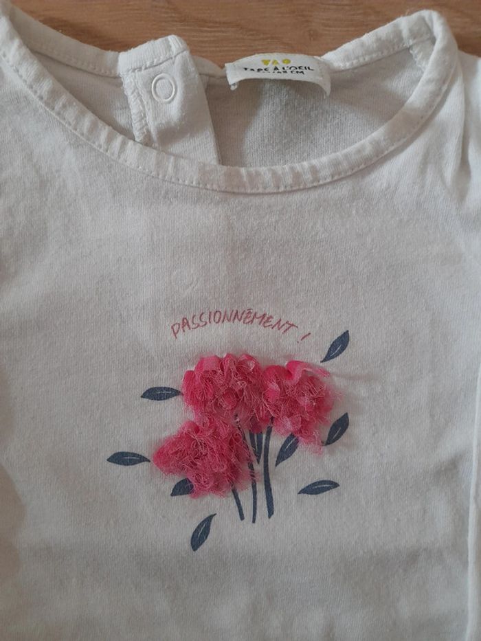 T-shirt de la marque Tape à l'œil Taille : 6 mois Les fleurs roses légèrement abîmées En très bon état