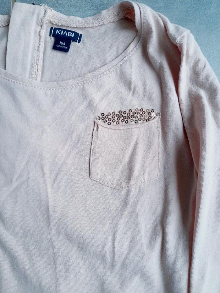 T-shirt ML de la marque Kiabi Taille : 10 ans Sequins sur le devant avec poche Fermeture éclaire au dos En très bon état