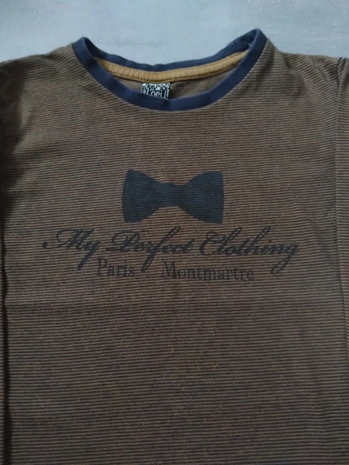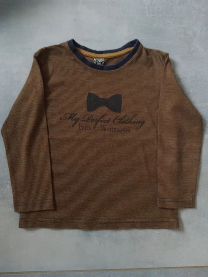 T-shirt ML de la marque Tape à l'oeil Taille : 4 ans Couleur noir et moutarde En très bon état