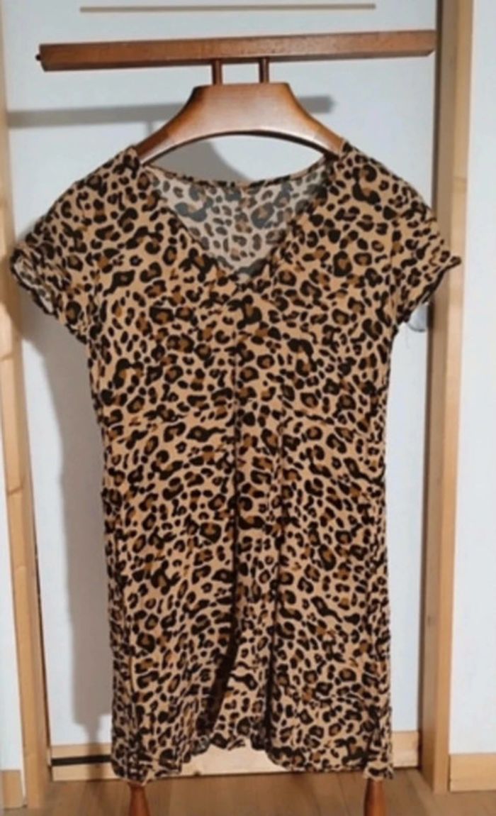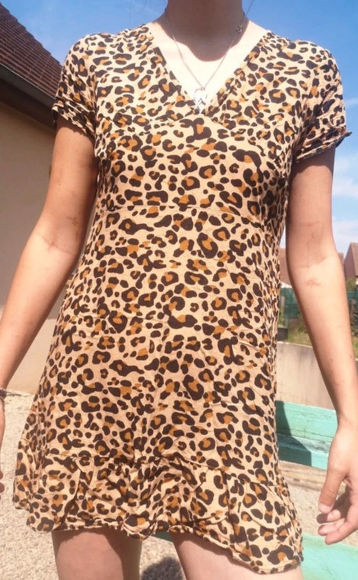 Robe à motif tigré, léopard 🐯 Col en V, en parfait état 👌 Taille 38 (modèle photo mesurant 1m70 pour 58kg) 😊