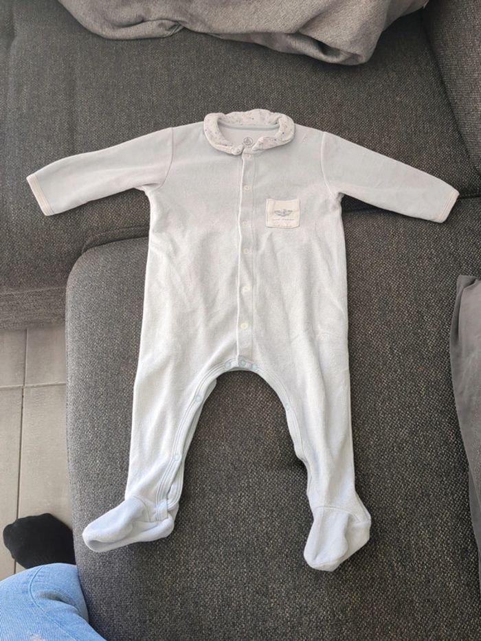 Pyjama en velours bleu ciel petit bateau 74cm - photo numéro 1