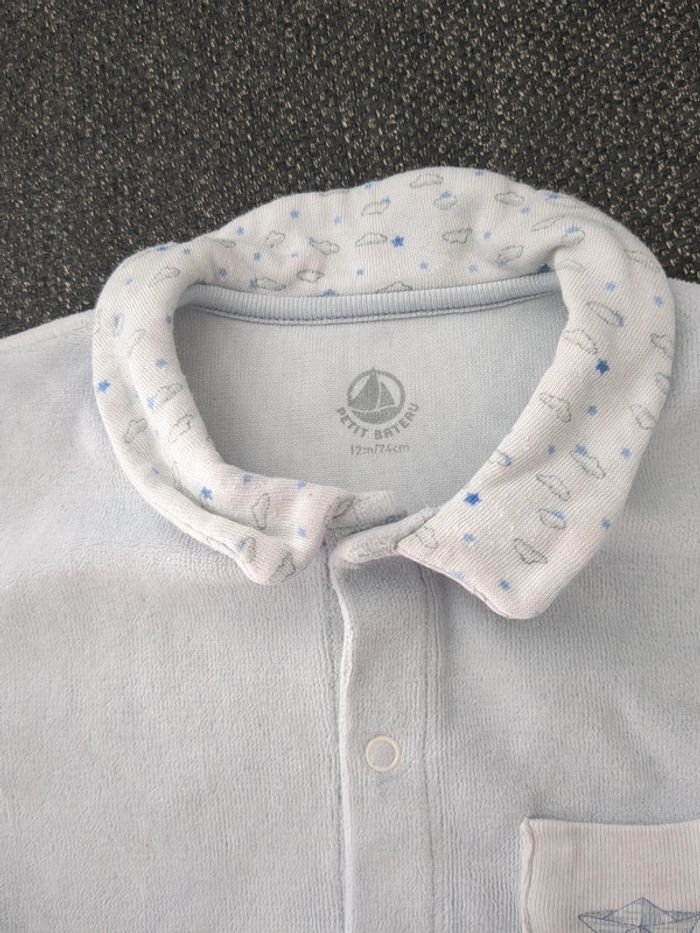 Pyjama en velours bleu ciel petit bateau 74cm - photo numéro 2