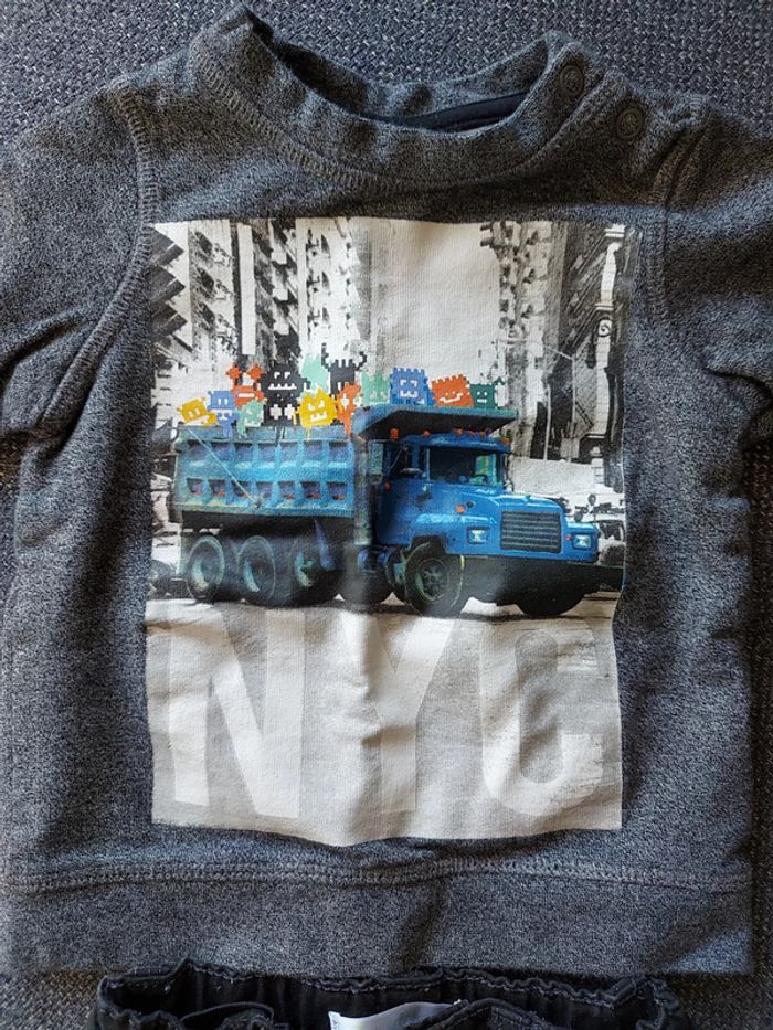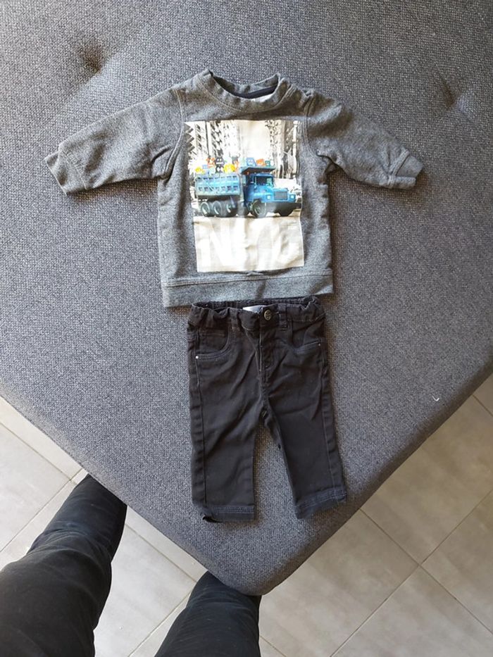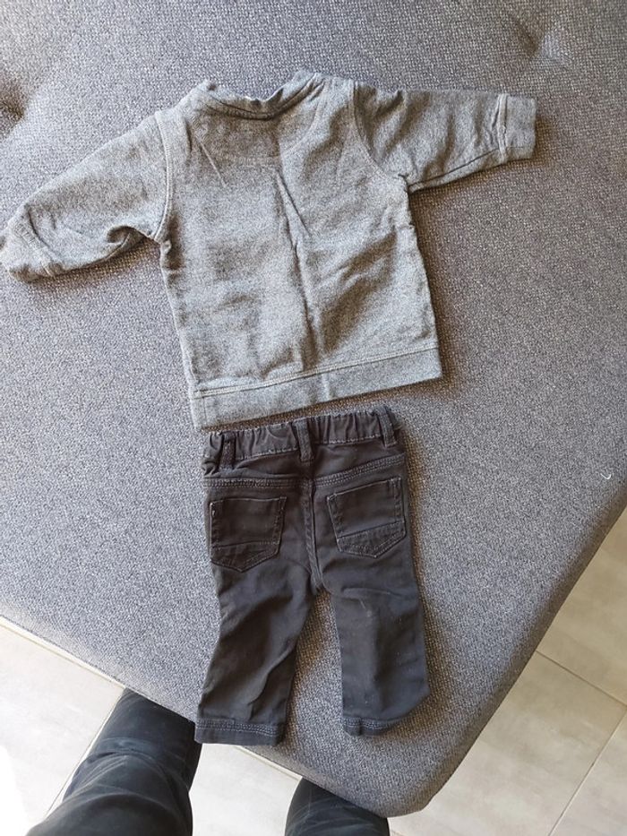 Pantalon en jean noir kitchoun 6 mois et sweat gris H&M NYC