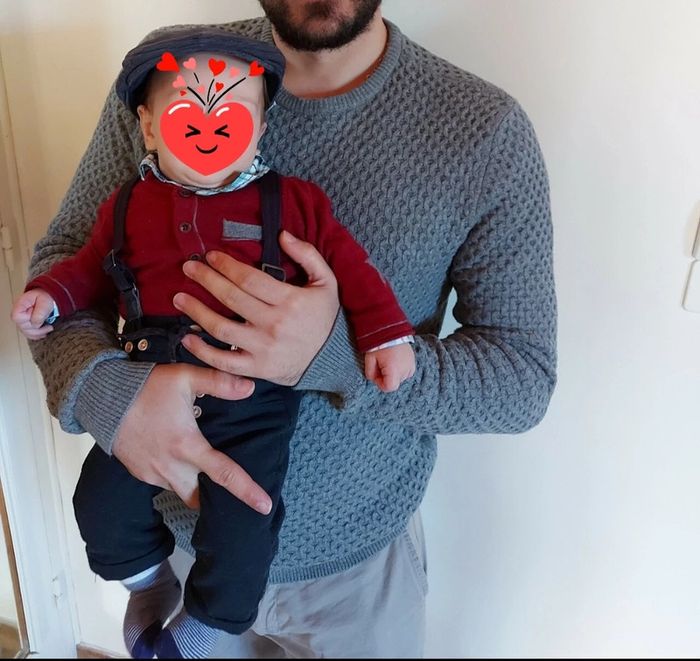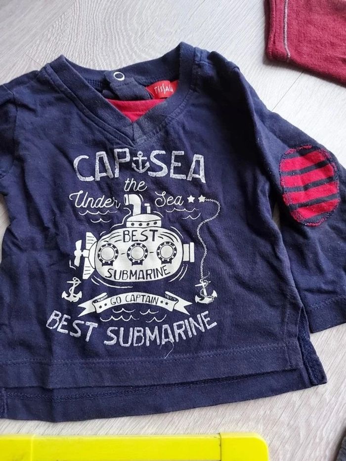 Pantalon doux gris original baby boy, tee shirt manches longues sous marin, captain sea, et pull fin bordeaux