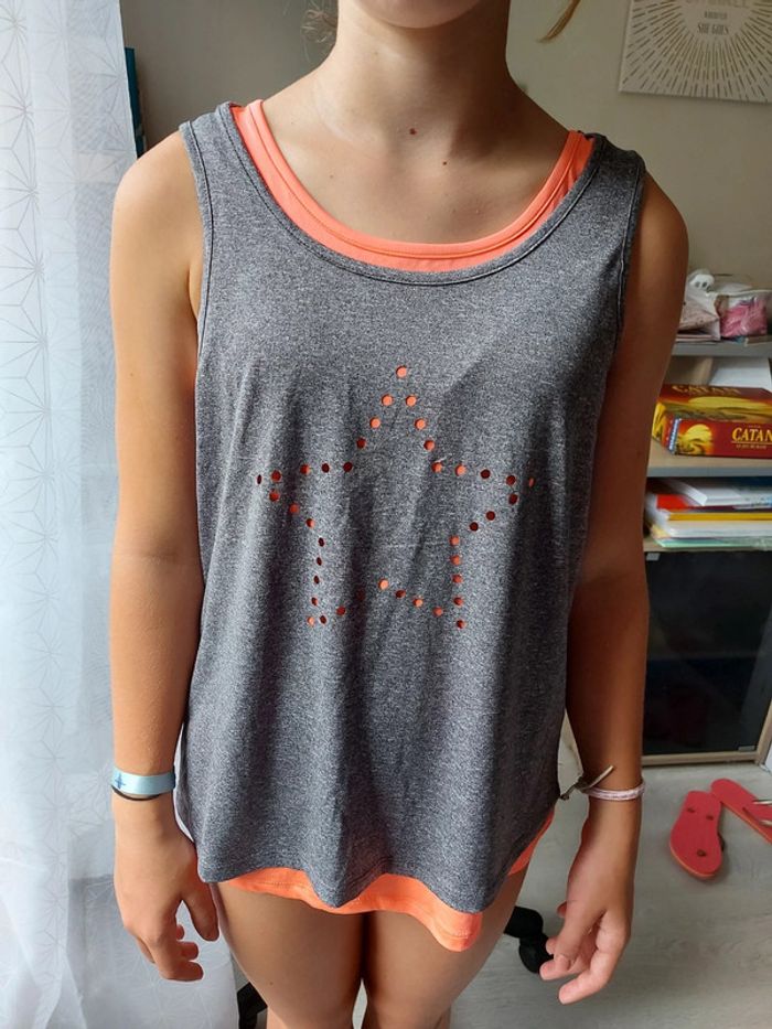 Trous en forme d'étoiles, taille 13 - 14 ans. Très peu porté Tee shirt de ville ou de sport
