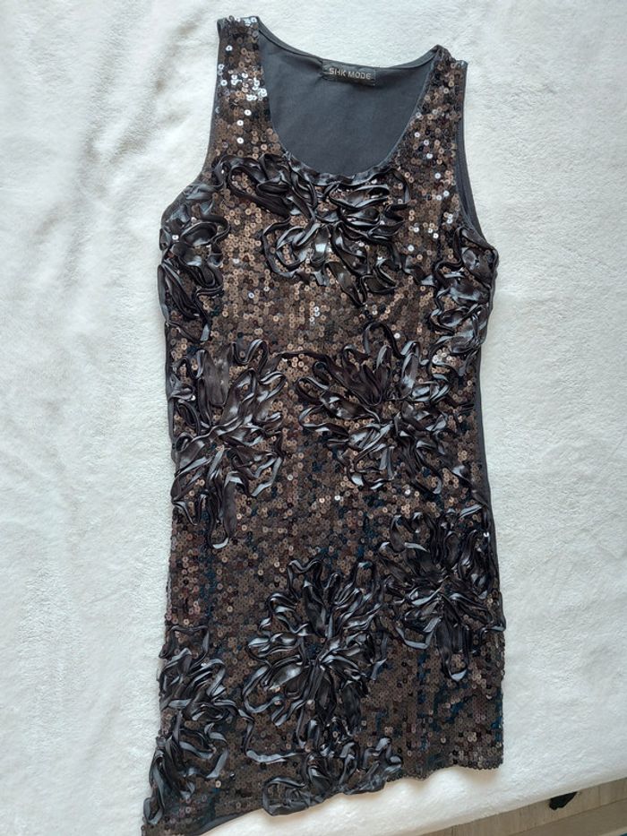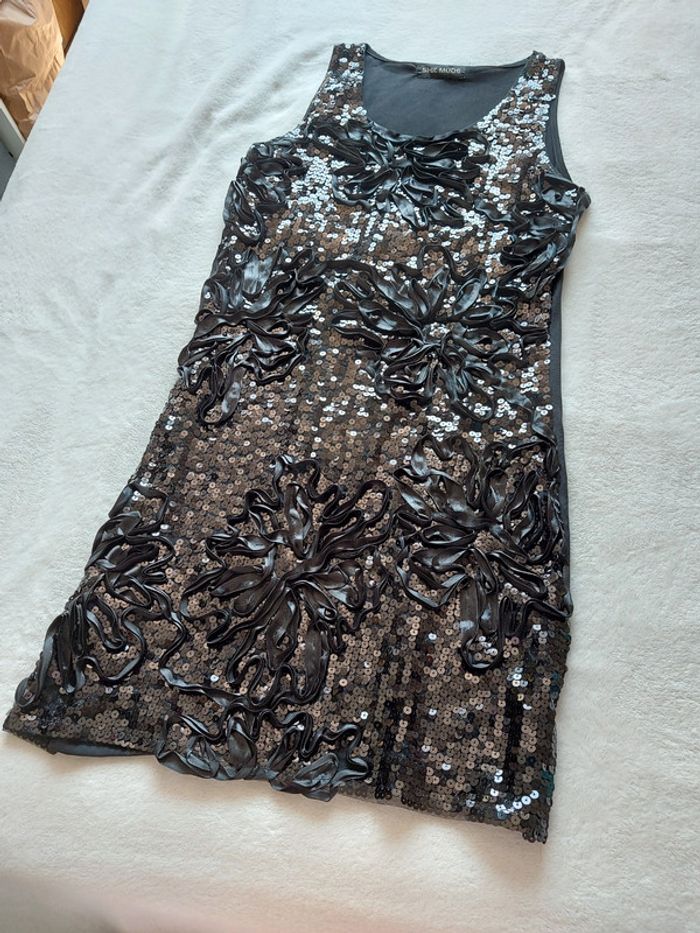 Robe noire strass et fleurs en relief taille M - photo numéro 5